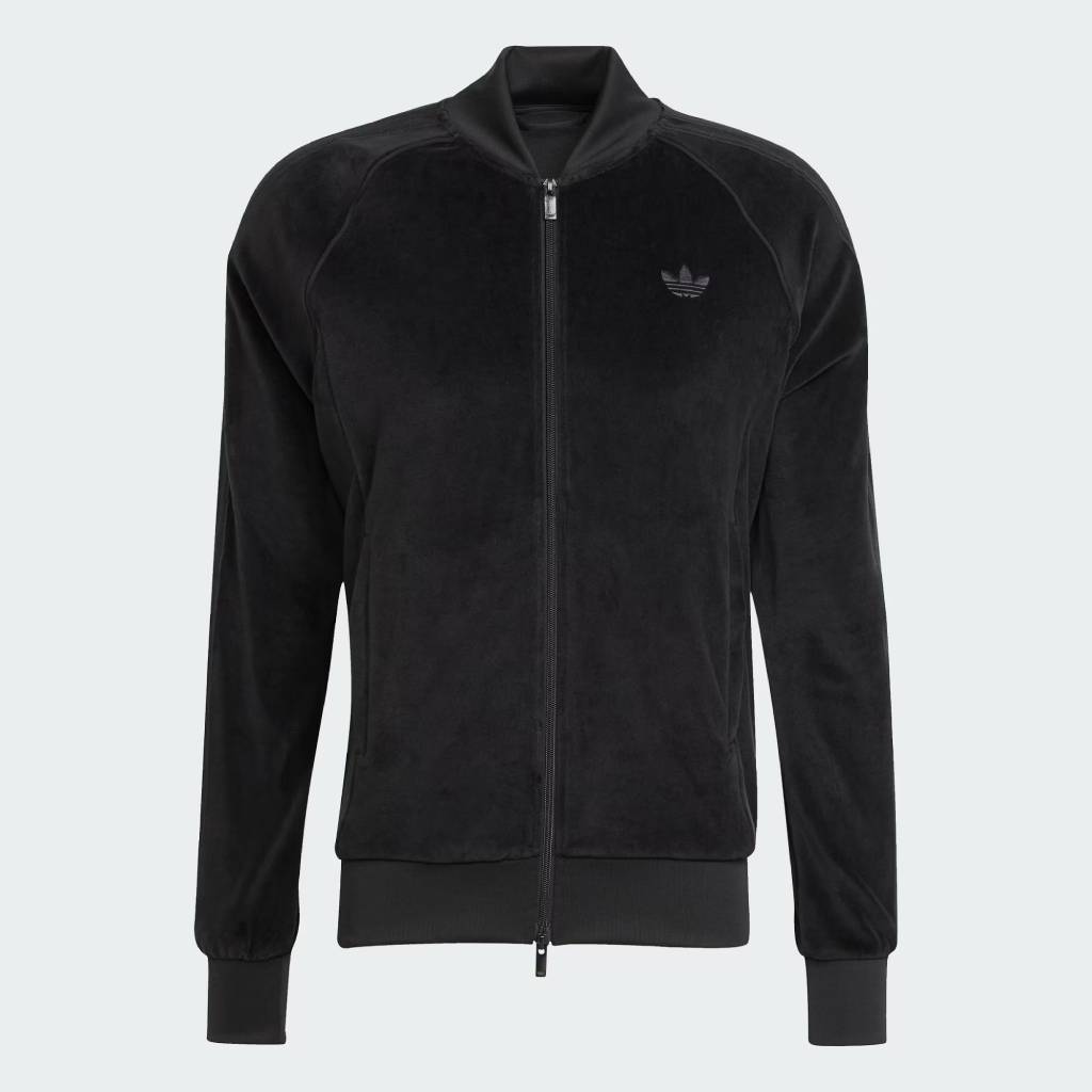クラシックなスリーストライプスを纏いながら、デニム素材で表現されたトラックジャケットとパンツ。