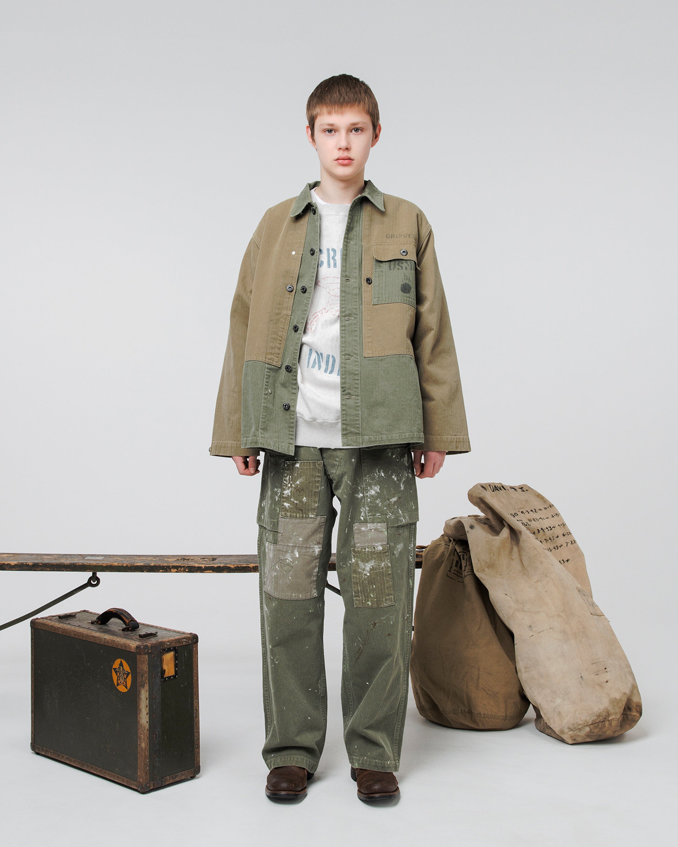 PAINT STAINED USMC P-44 HBT TROUSERS #PAINT STAINED OD [BW252-PU4HT]