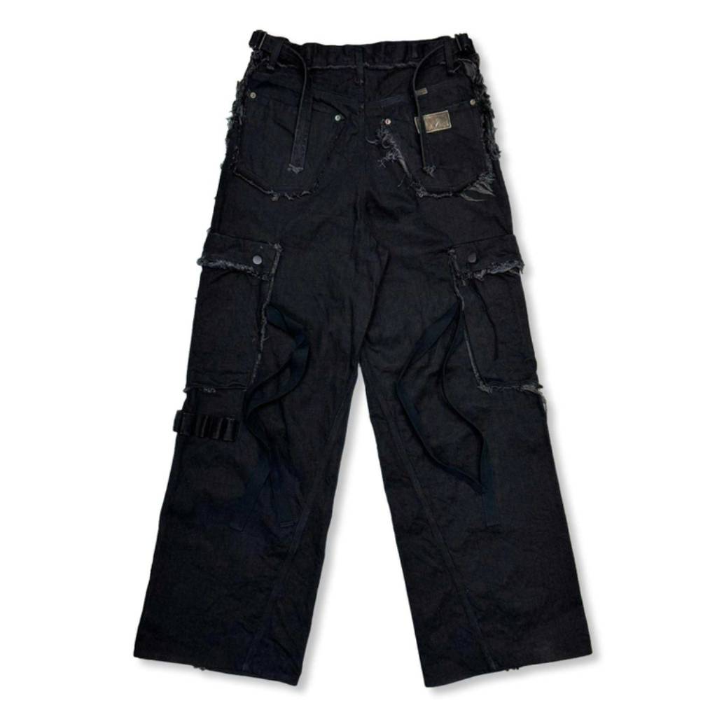 Slash Seam Twist Cargo Jeans (NOIR) [M-P1-PT21]