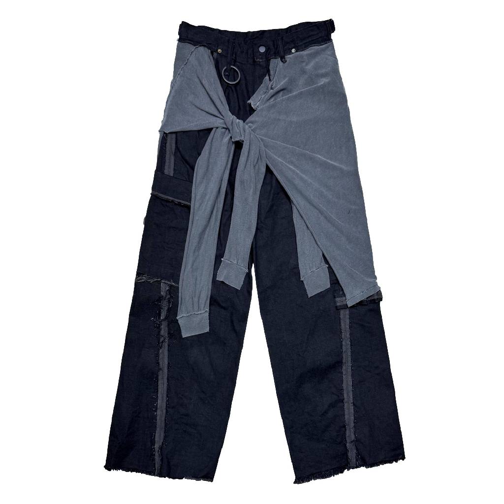 Slash Seam Twist Cargo Jeans With Wrapped (NOIR) [M-P2-PT8]
