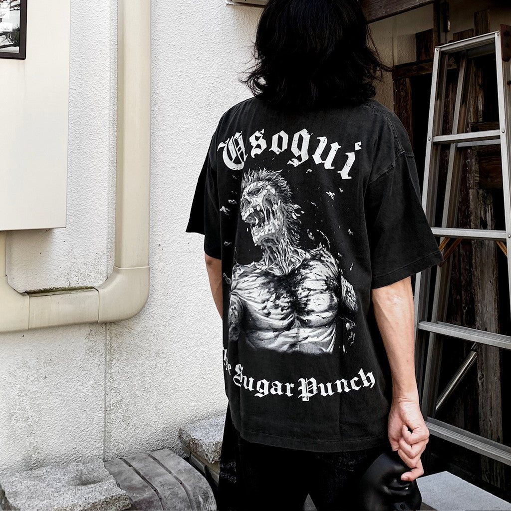 In addition to designing for numerous brands and select shops, he is also in charge of direction. His designs incorporate manga and anime as sources for his impactful yet familiar graphic designs that are reminiscent of vintage clothing such as band T-shirts. He also utilizes his knowledge of clothing to incorporate graphics into his carefully crafted wardrobe, including materials, patterns, sewing, processing, and printing methods. By incorporating genres known as subculture into harmonious clothing, he creates a synergistic effect and pursues the highest quality wardrobe that matches modern styling.