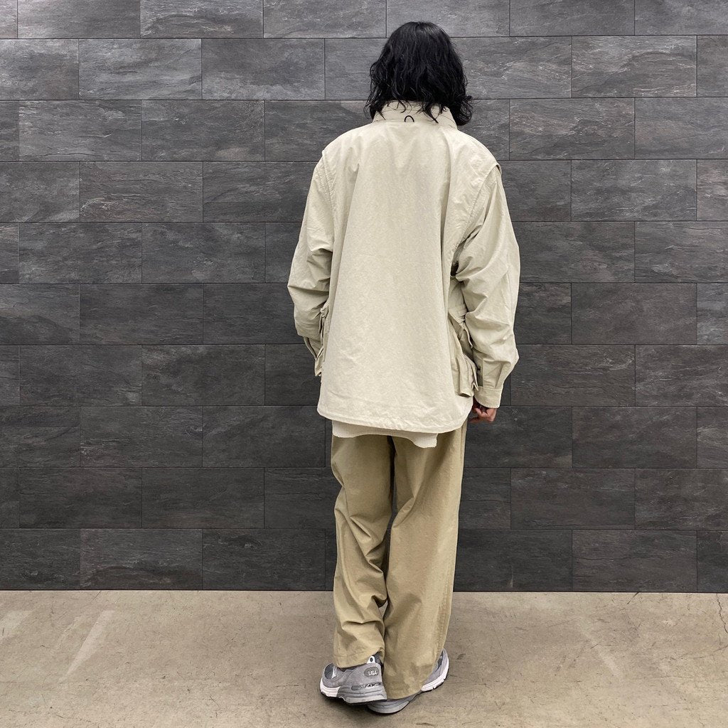 The forward-flared sleeves, a military detail, are a design accent, and action pleats have been added to allow the cuffs to be adjusted.