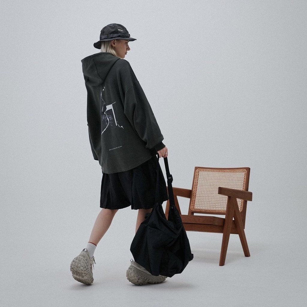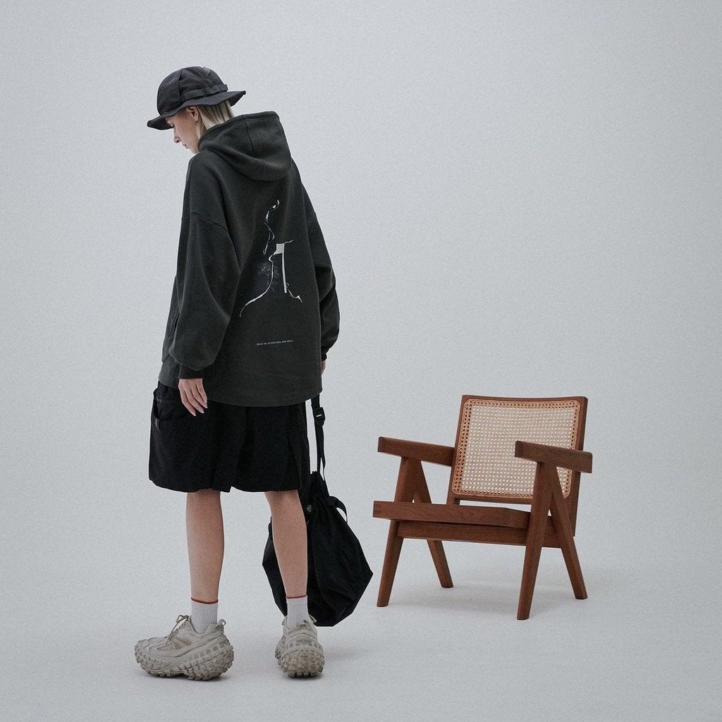 The print design references the strokes on the sleeves and the graphics on the back.