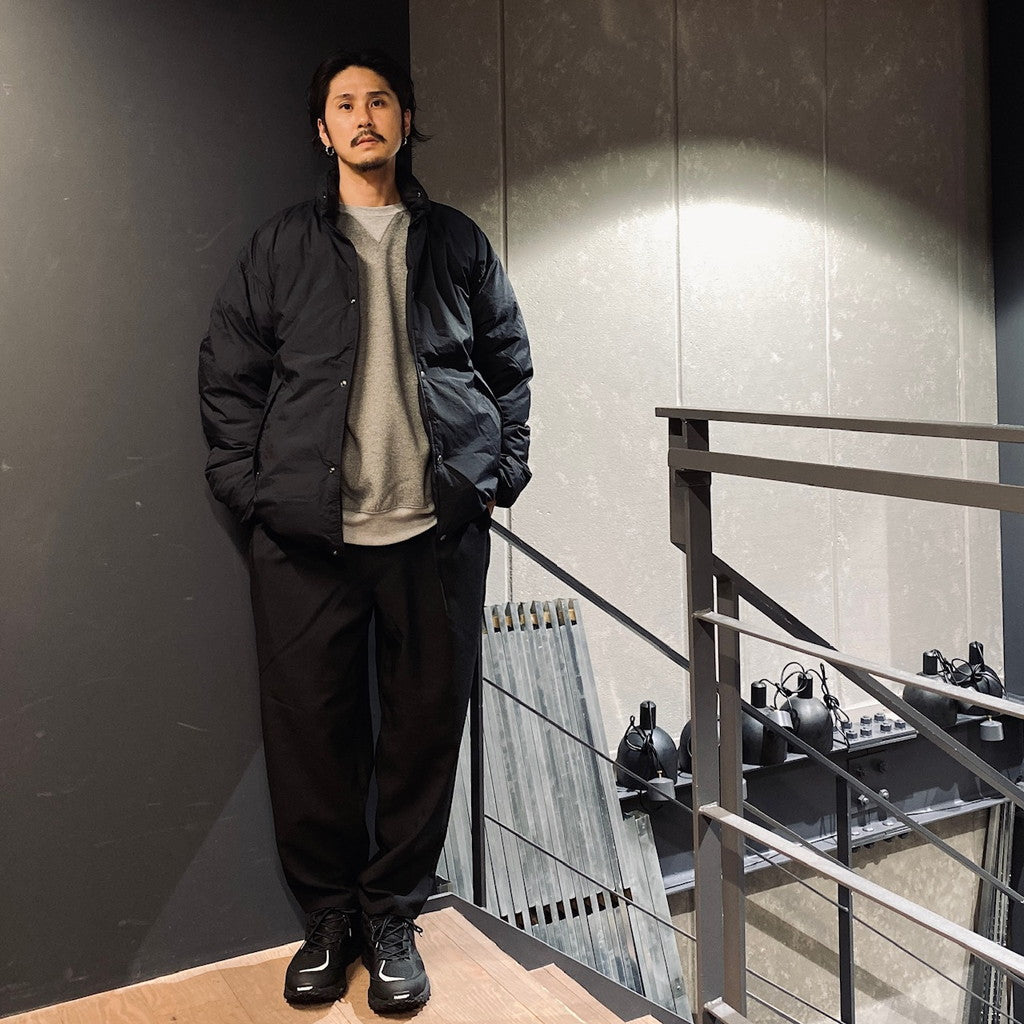The outer material is made of recycled taslan nylon, which has a light, natural texture and is water-repellent.