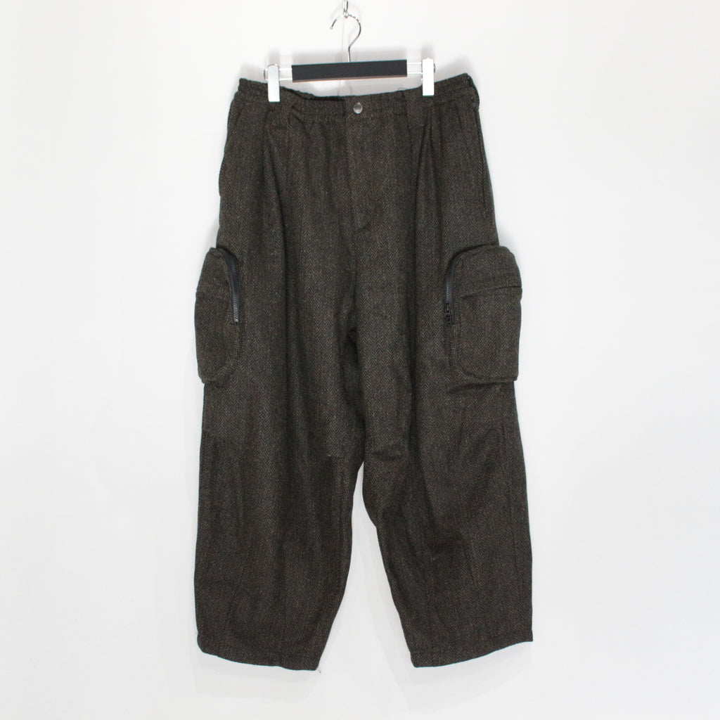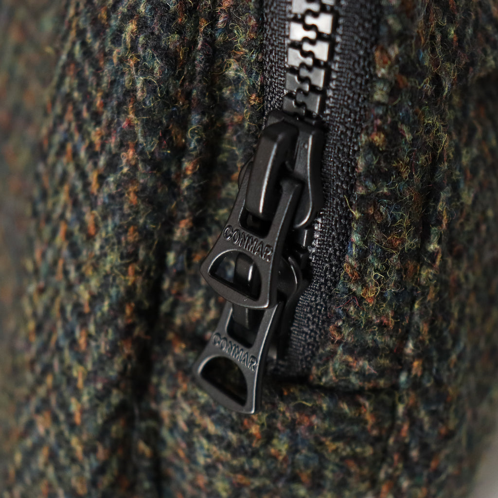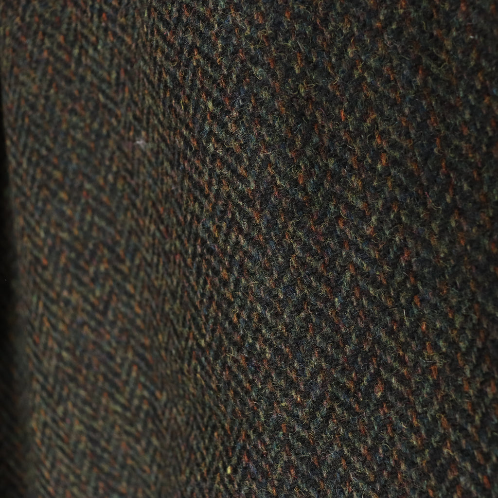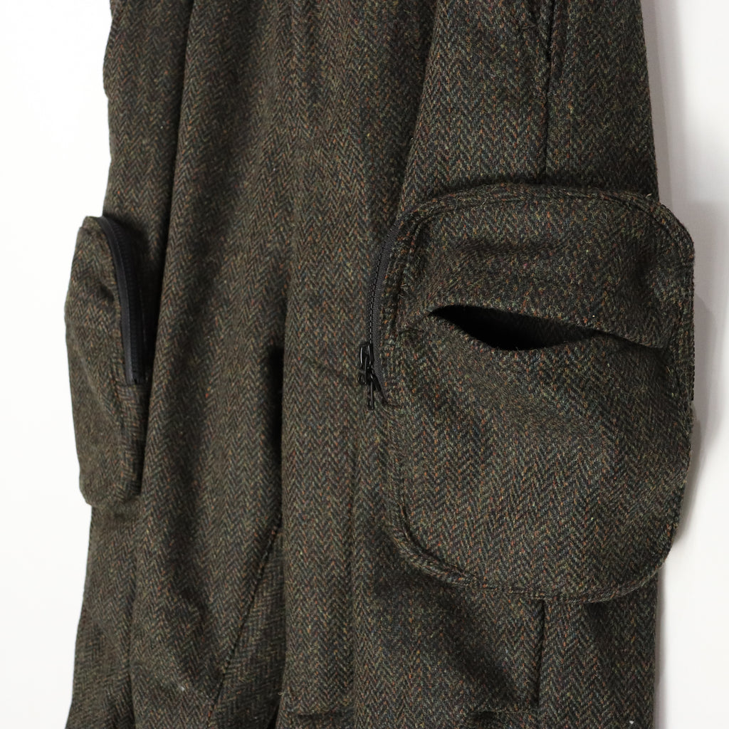 Both thighs have large pockets with the same design as the jacket and vest, which are made from the same wool-blend tweed fabric.