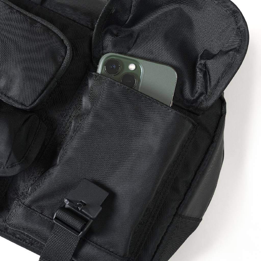 Although it is small in size, it has a large gusset and, due to its unique shape, the bag has a large space inside, so it has ample storage capacity to carry not only everyday essentials such as a wallet and iPhone case, but also a pouch and a mini-sized 500ml plastic bottle.