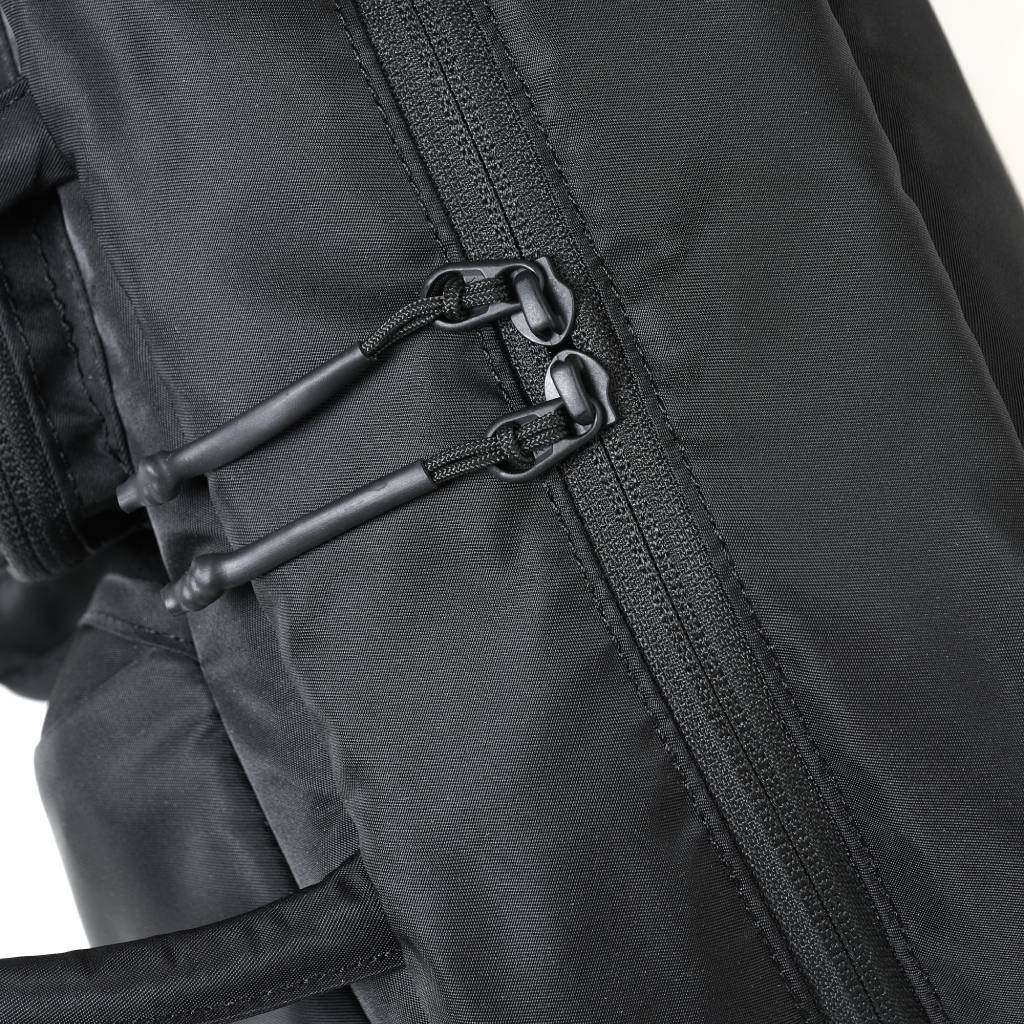 The outer fabric is made of high-density nylon twill with a water-repellent surface.