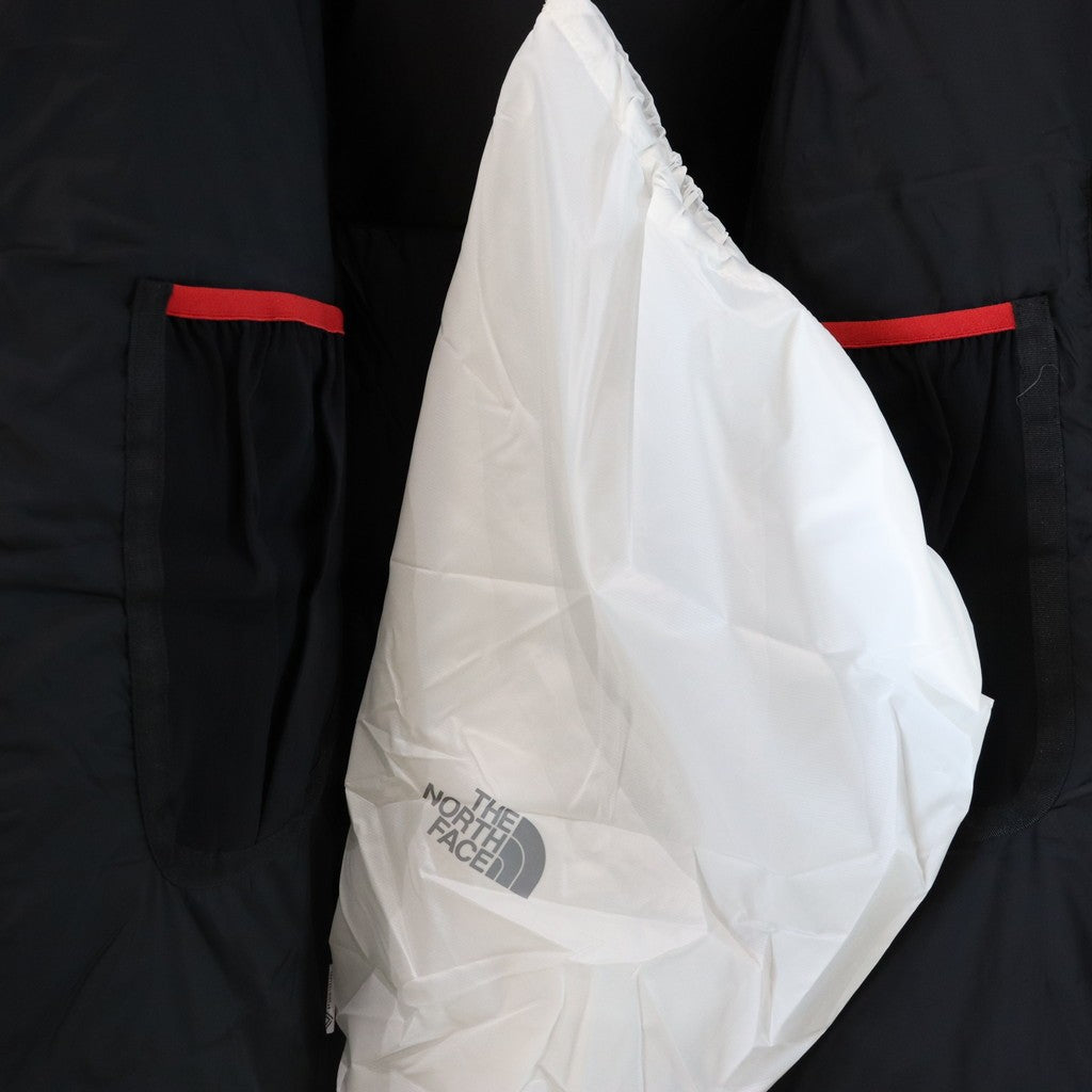 Double flap front / Two bottle pockets inside / One-hand adjuster hood / Waterproof zippers on both chest pockets / Down-filled inner collar