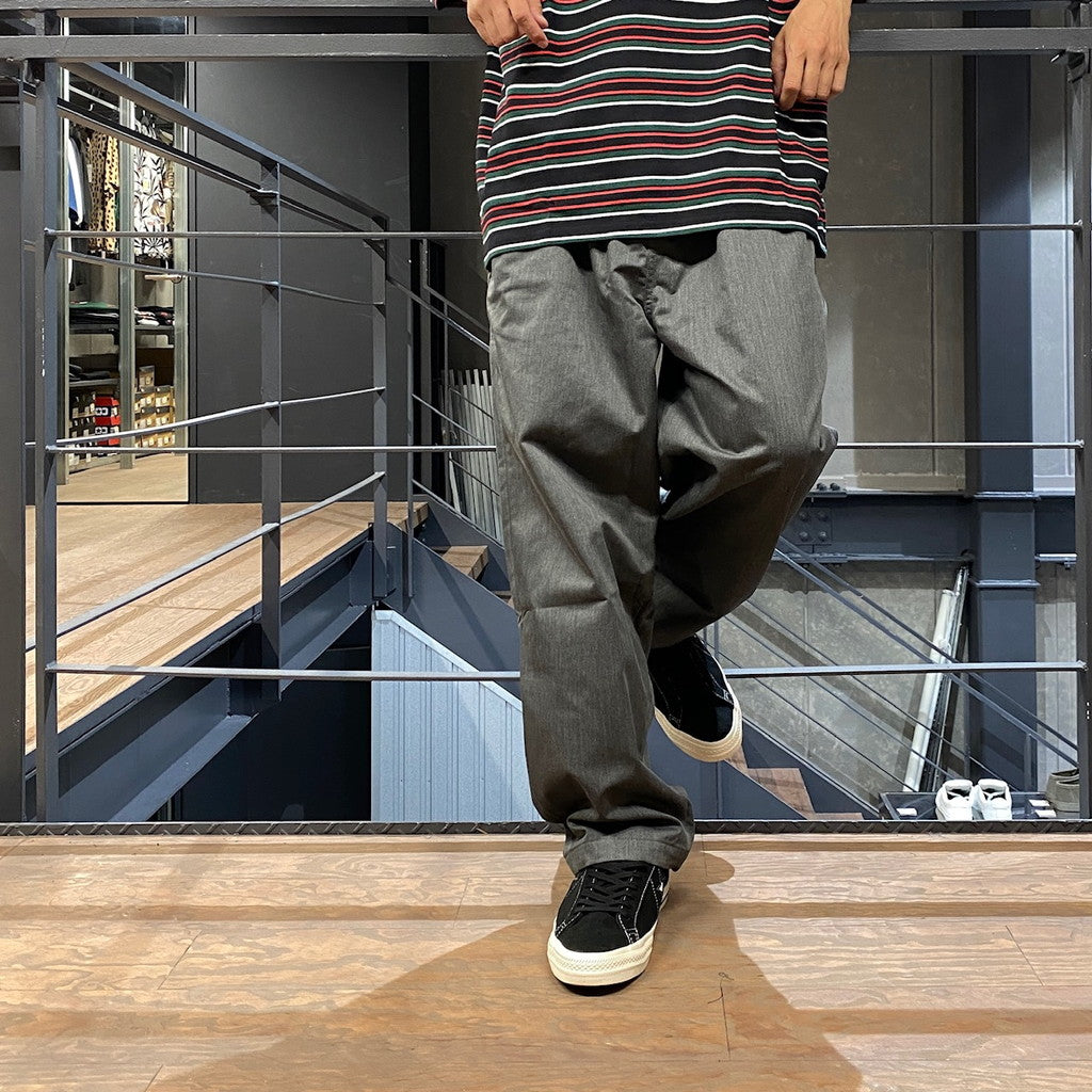 Made from soft washed T/C twill, it features an impressive wide tapered silhouette with volume from the hips to the knees.