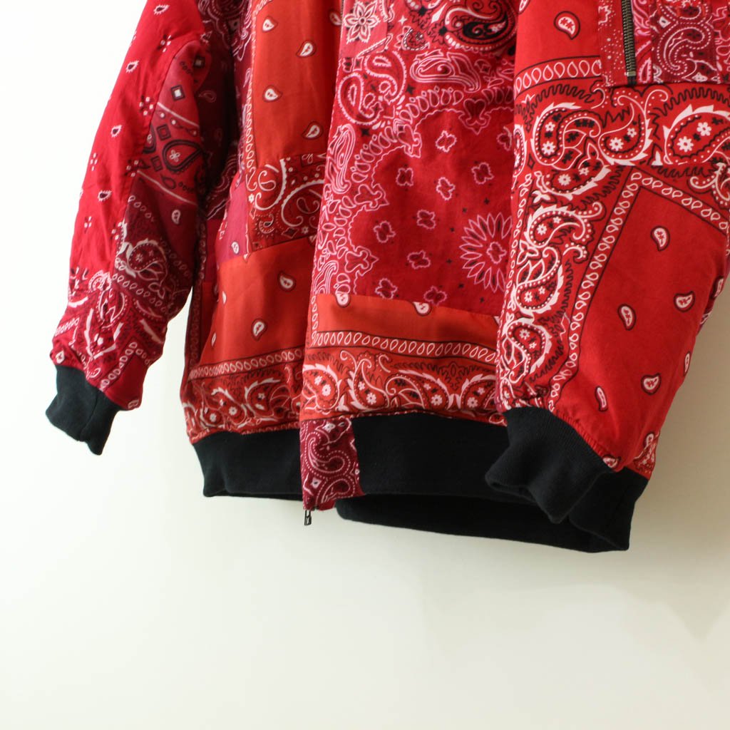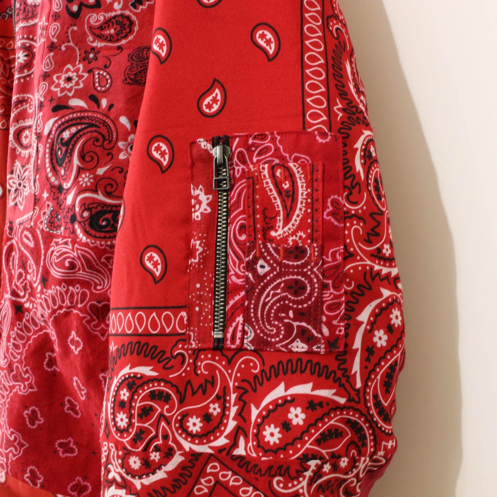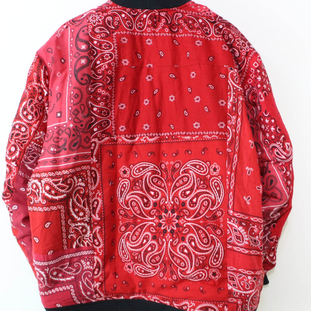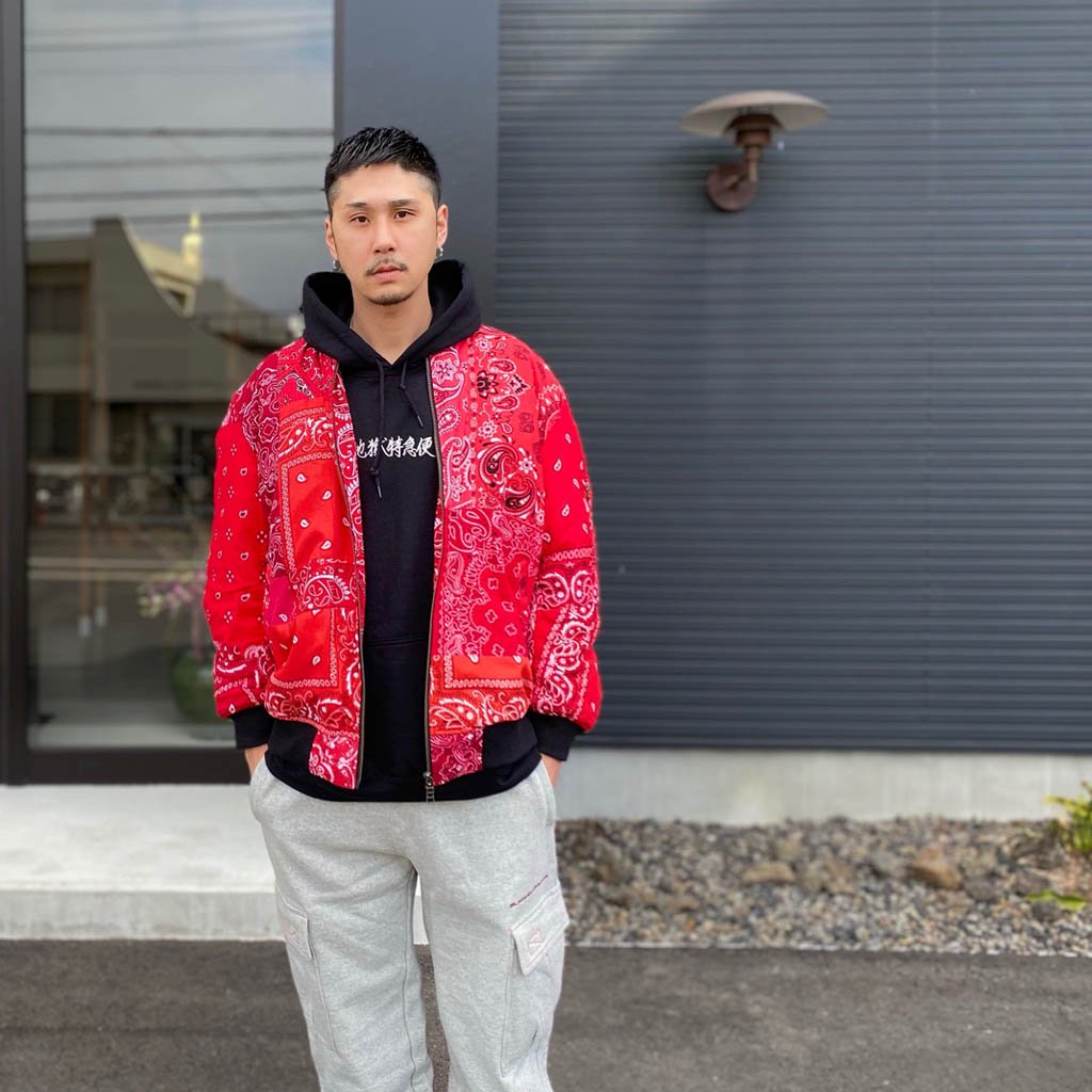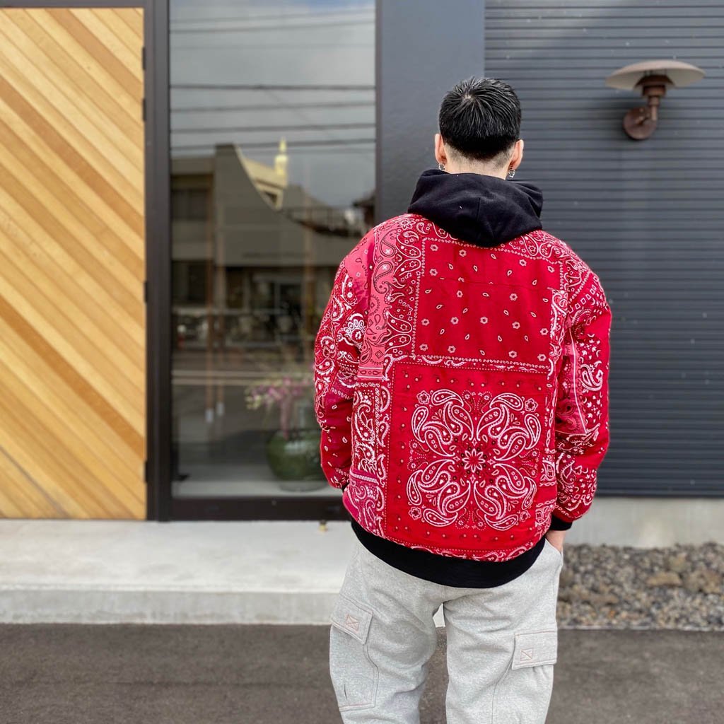USEDアイテムを使用し再構築したVARIOUS JACKET。USEDのペイズリーバンダナを再利用したサステナブルな1着。ベースはパッチワークデザインが映えるミニマルなデザインのMA-1タイプ。MA-1のアイコンであるシガレットポケットもパッチワークで製作されています。外見だけではなく寒さを軽減する高機能中綿素材(シンサレート)を搭載し、軽量かつ保温性も兼ね備えています。