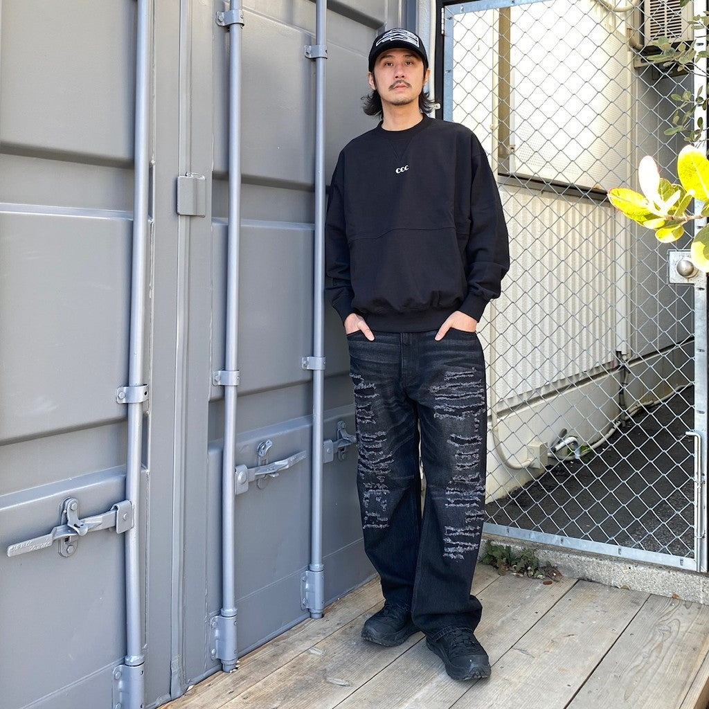 Embroidered Logo Switching Cotton Sweatshirt #BLACK [CCC-241C001]