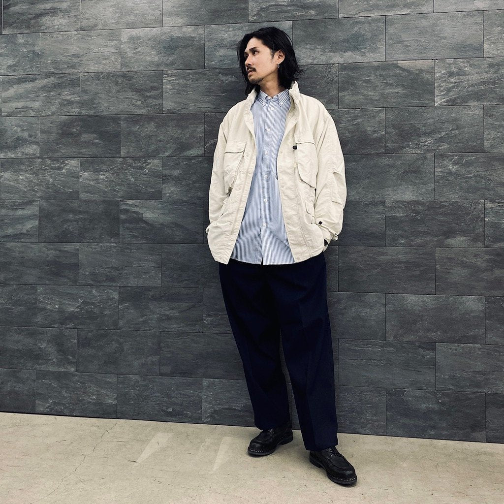 トラディショナルな2プリーツワイドパンツを天然繊維のように感じる現代的なハイテク素材、シルエットでDP39流にアップデートいたしました。