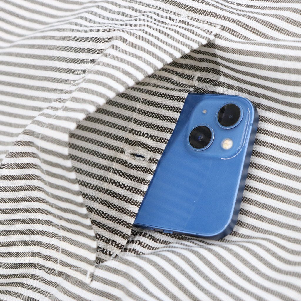 大きくデザインした胸のパッチポケットの中に小さなモバイルポケットを配し、シンプルながらも使いやすいディテールを加えております。