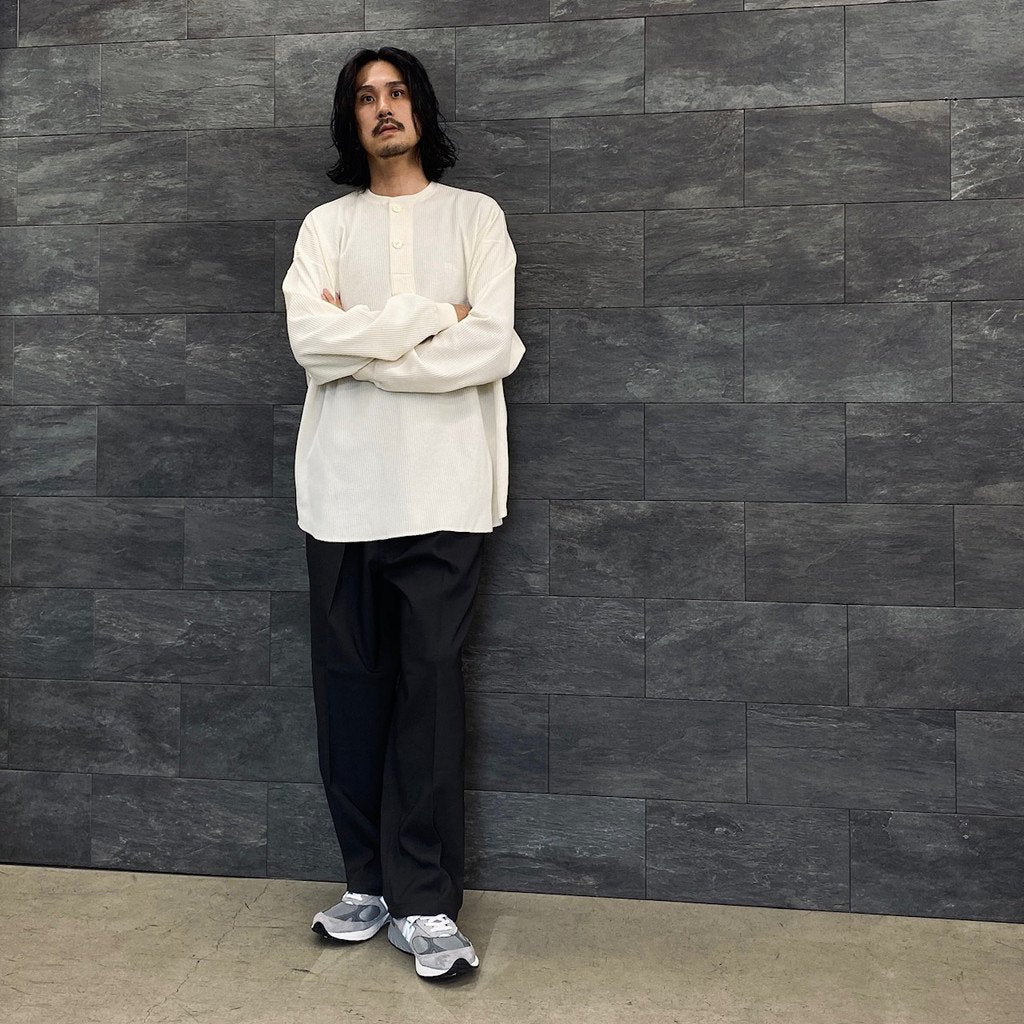 アメリカ軍の代表的な防寒インナー、ワッフル素材を使用したサーマルヘンリーネックロングスリーブTシャツです。