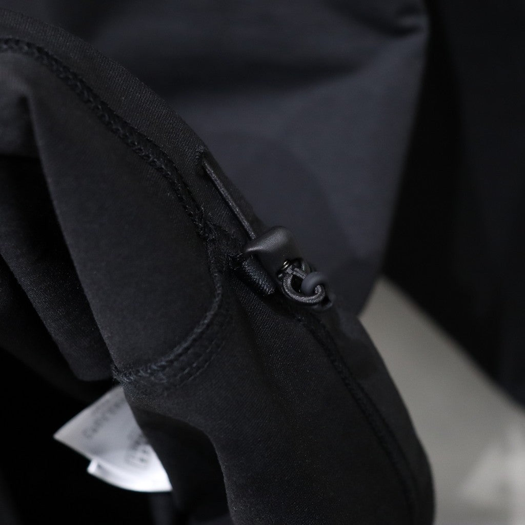 ドライタッチなポリエステルスパン糸を表に、裏には伸縮性のあるポリエステル糸をプレーティングすることで目がつまった、ハリ感のあるヘビーウエイトなTシャツ生地です。