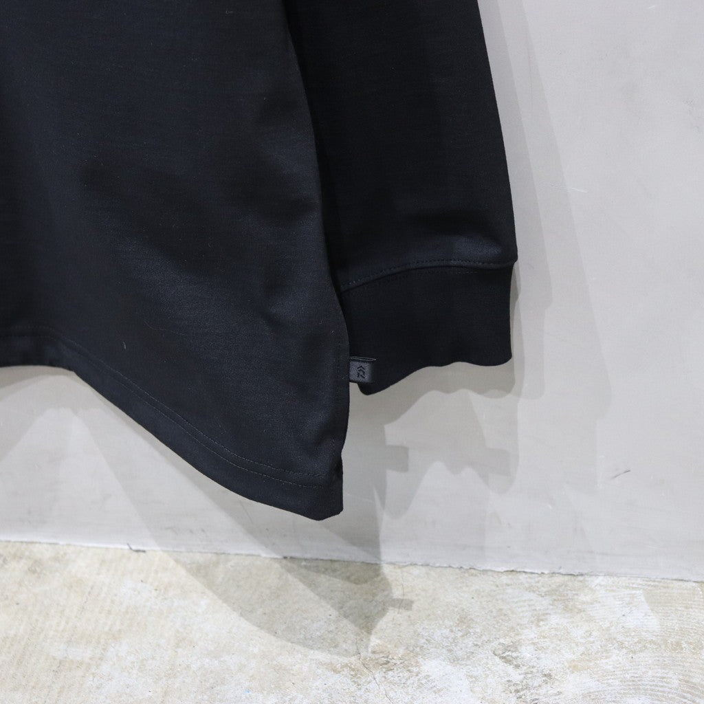 コットンライクな度詰めのしっかりとした素材感のポリエステル糸を使用し編み立てている為、ハリがありながらも着心地の良い仕上がりとなっております。