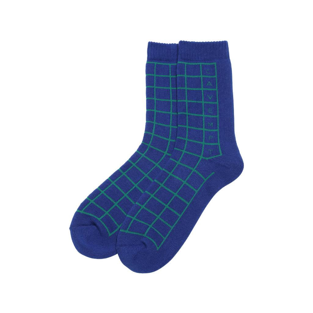 コットン84%、ナイロン14%、ポリエステル1%、ポリウレタン1%。編み込みでグラフィック。Mサイズ(24‐26cm)、Lサイズ(27‐29cm)の2サイズ。日本製。