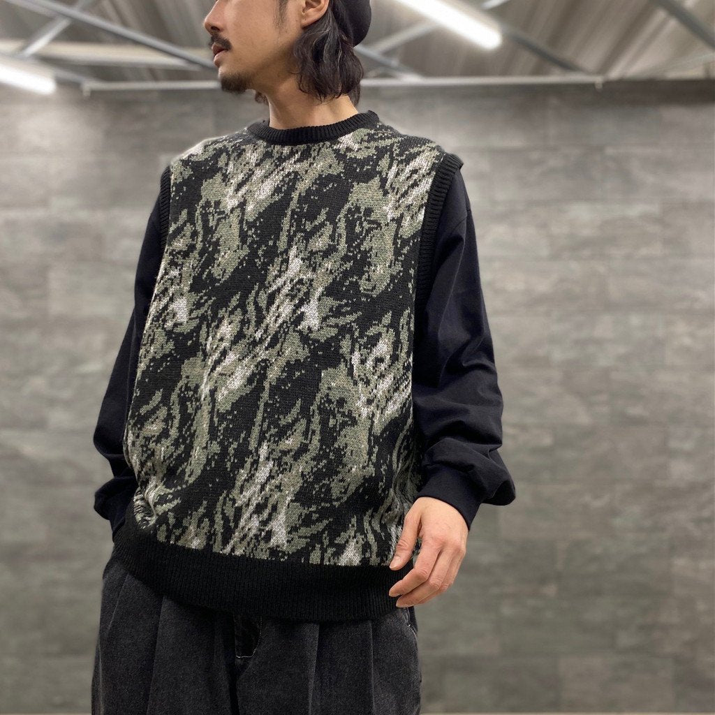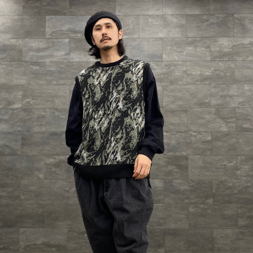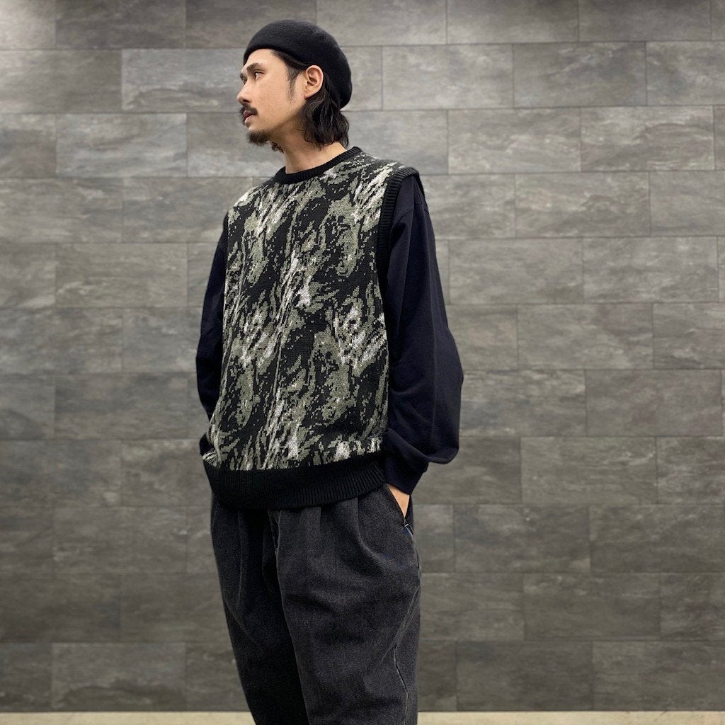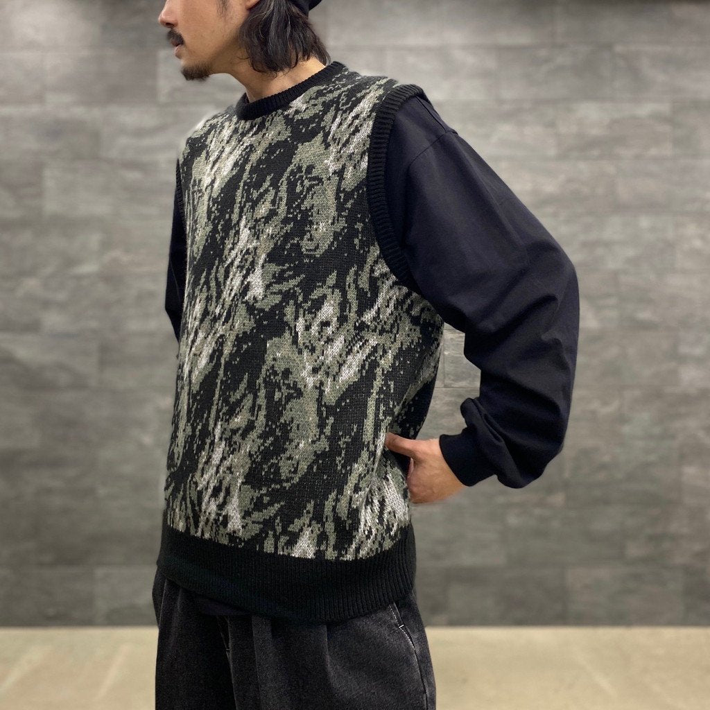 オリジナルのObakeグラフィックが7ゲージのジャガード編みで表現された愛されニットベスト。