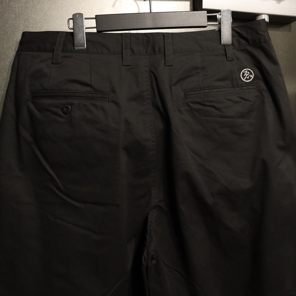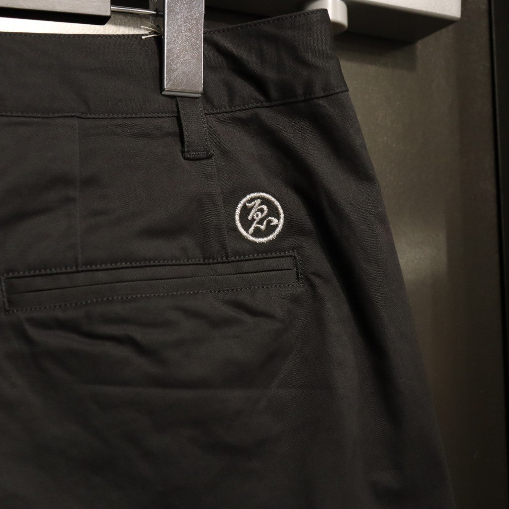 バックの片玉縁ポケットは隠しドットボタン仕様。右腰にはシルバーのゑ刺繍入り。