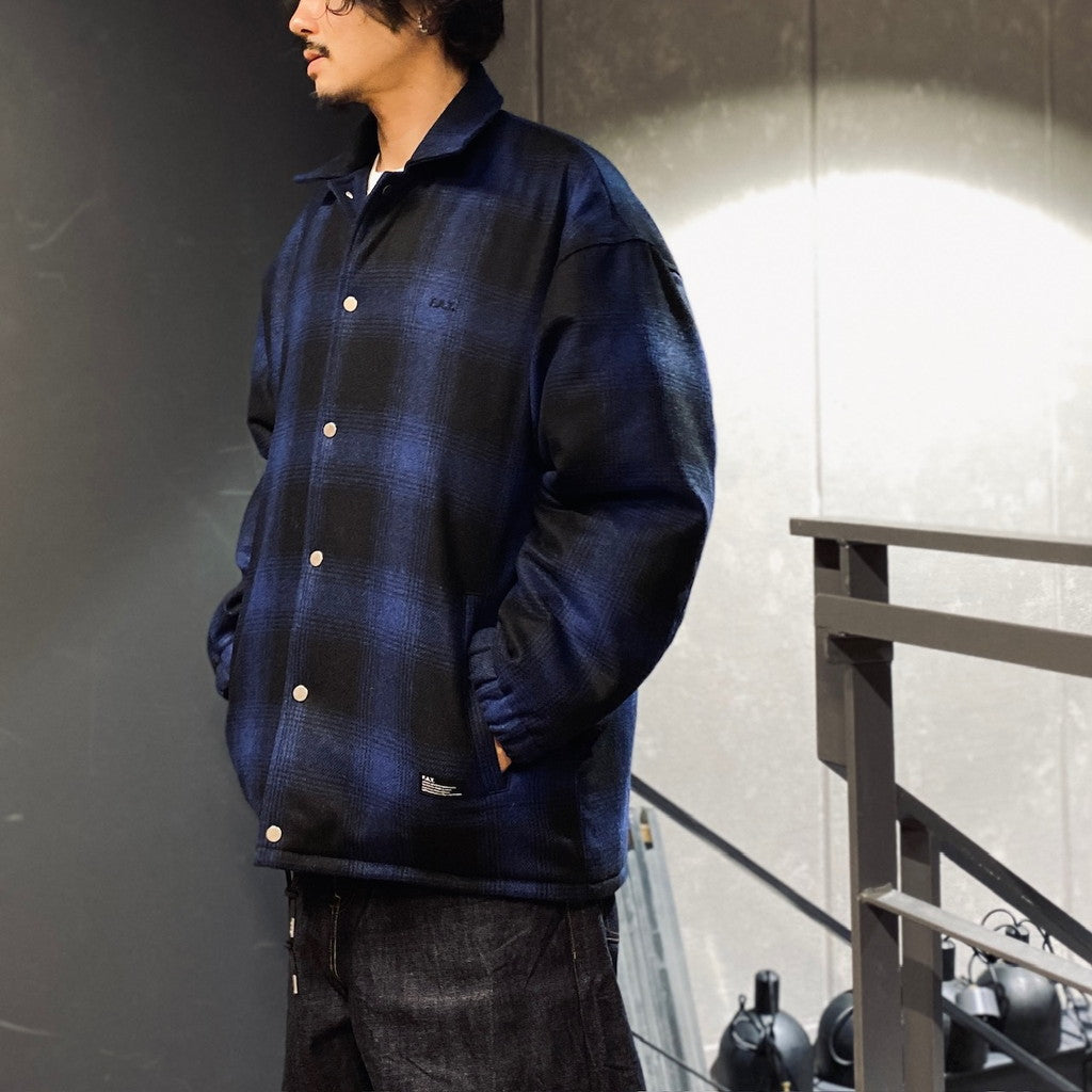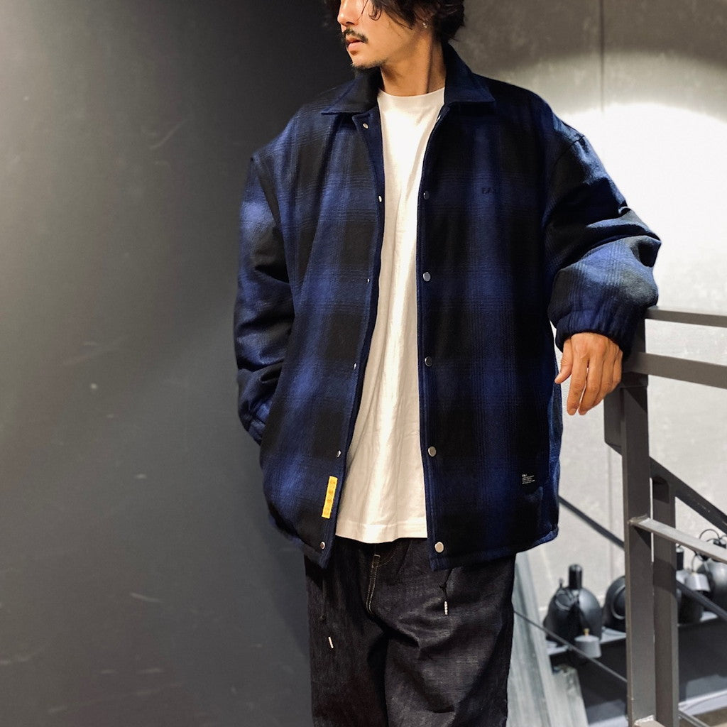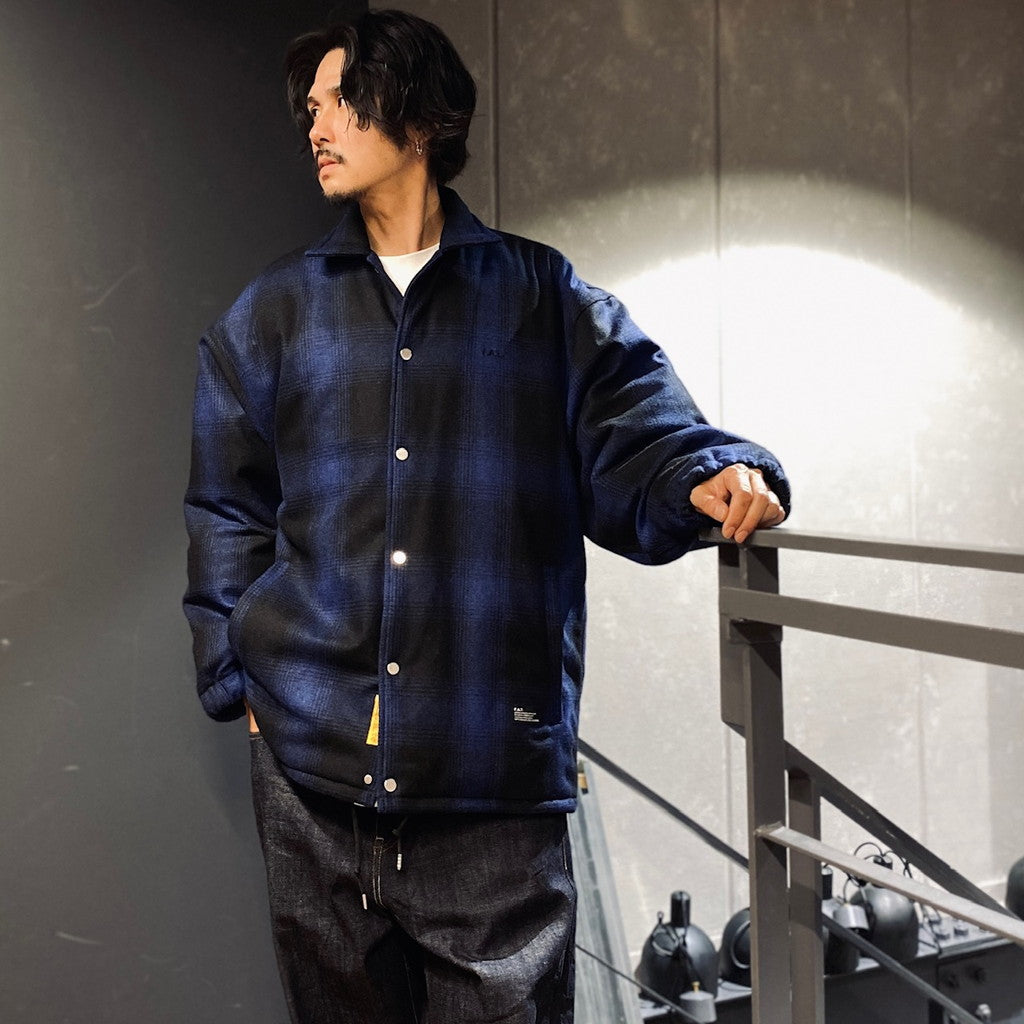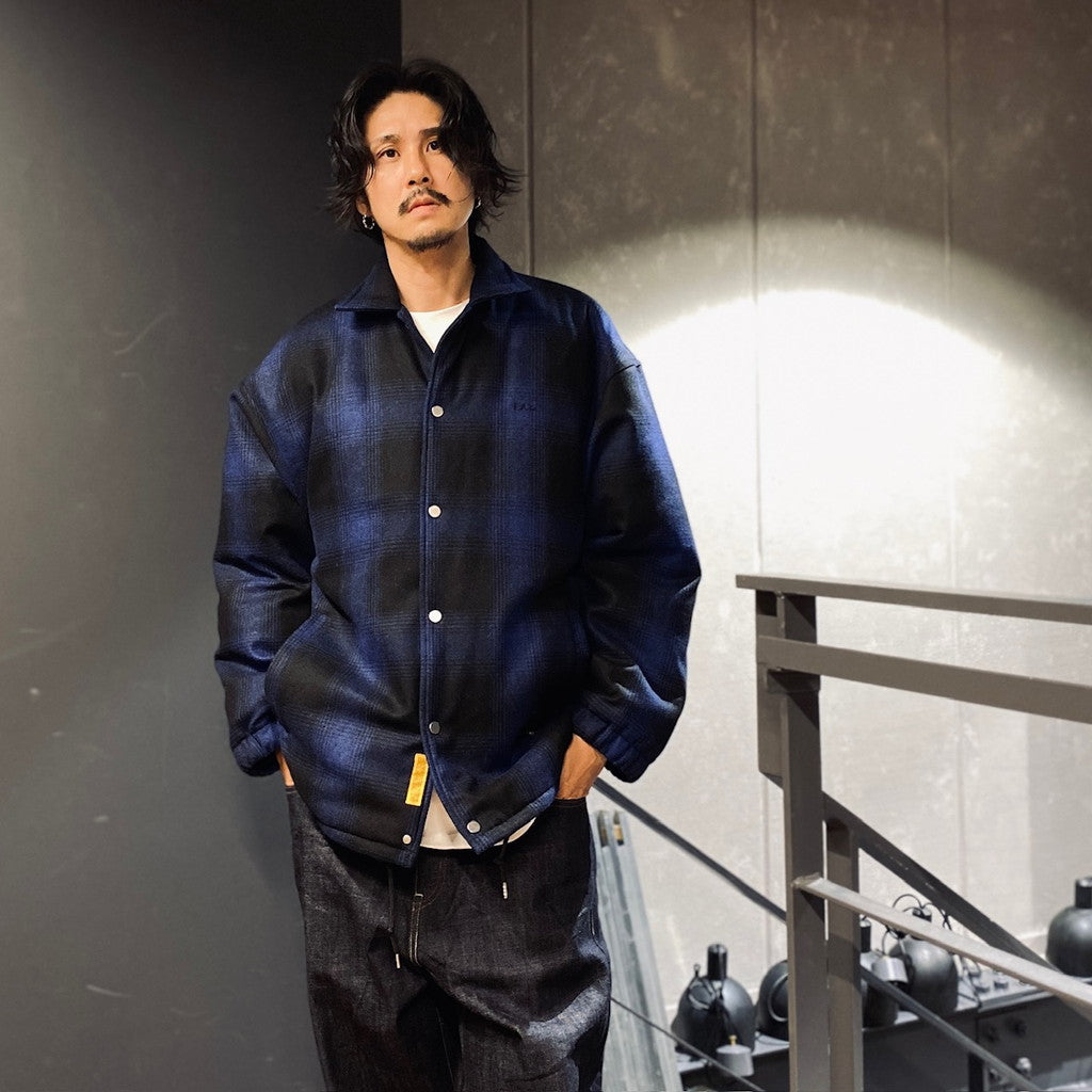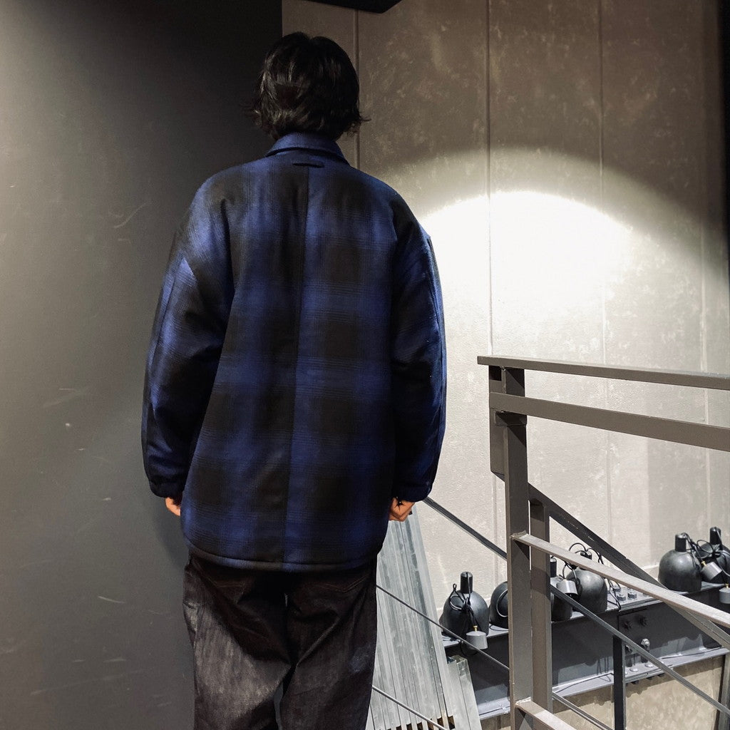 ウールオンブレチェックを使用したコーチジャケットは、中綿キルティング仕様にすることでワークテイストを醸し出すアイテム。
