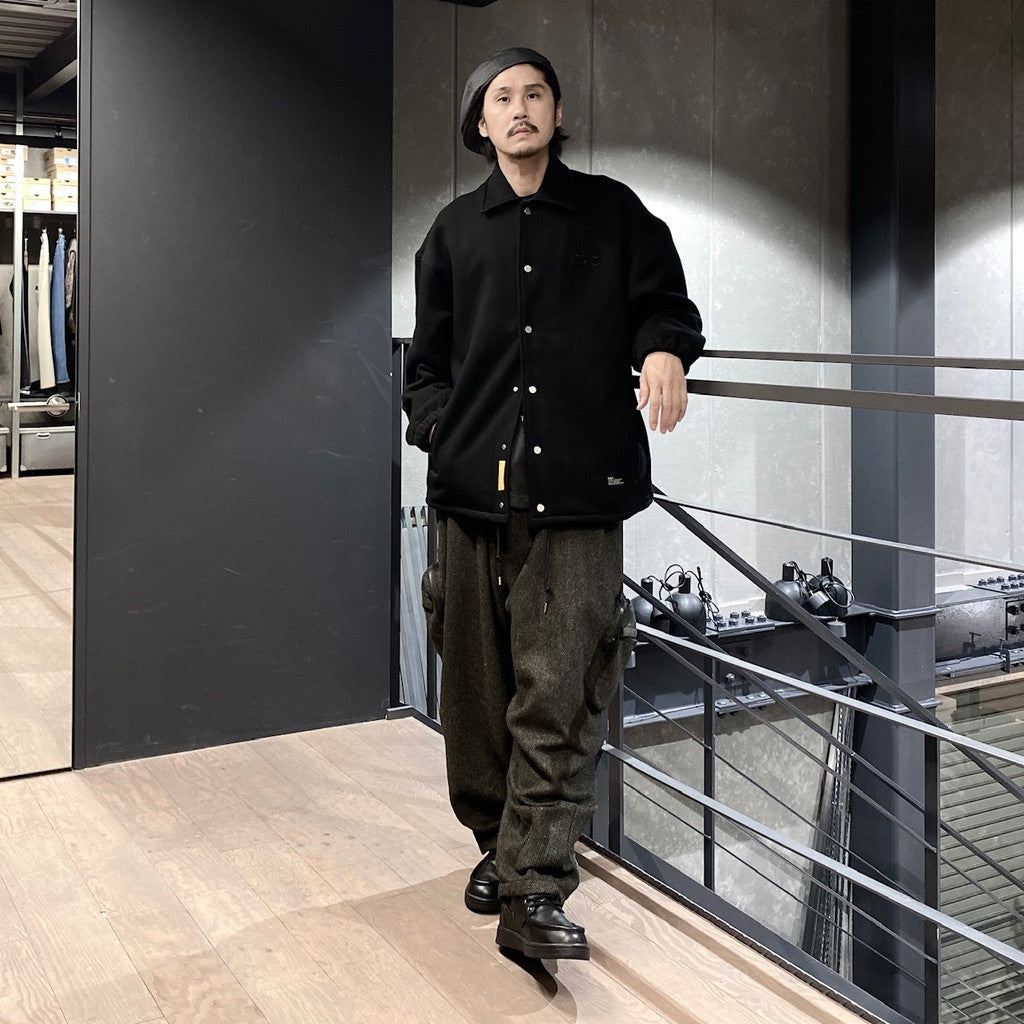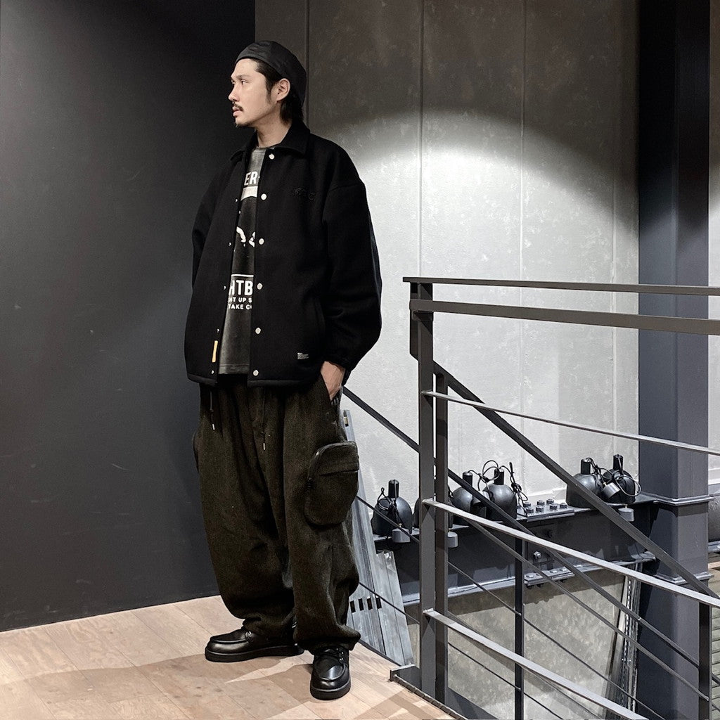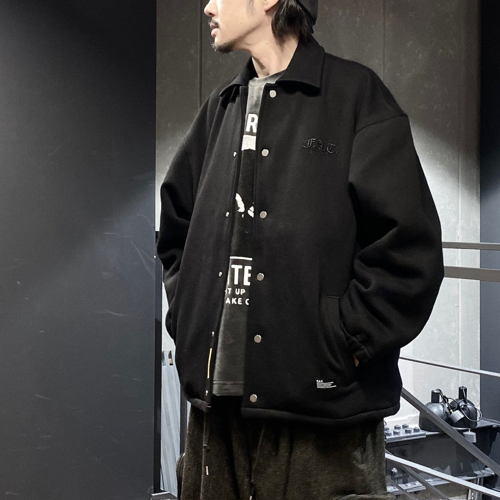 バックに施されたダイナミックな厚盛り刺繍が印象的なコーチジャケット。
