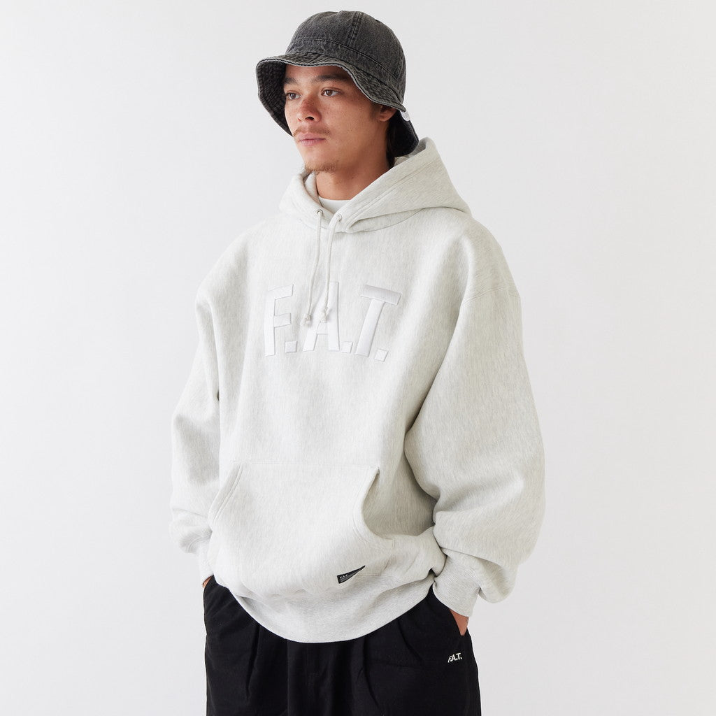 フロントの厚盛り刺繍が印象的なスウェットパーカー。