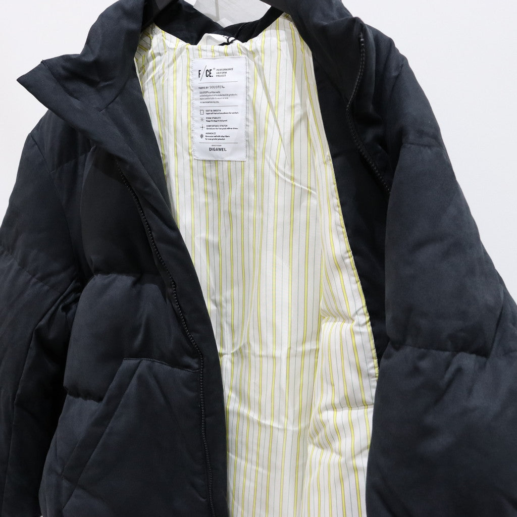 ダウン量を多めにすることで厚みを出し、袖口幅、身頃裾を他のパーツよりも大きくしたビッグシルエットです。
