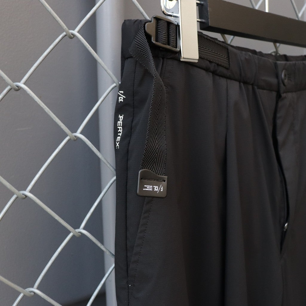 最新鋭の防水透湿素材PERTEX SHIELDの2.5層素材使用したWATERPROOFテクニカル・テーパードトラウザー 。