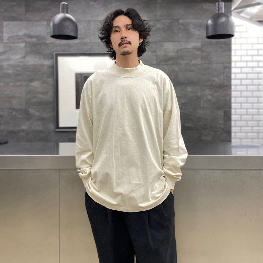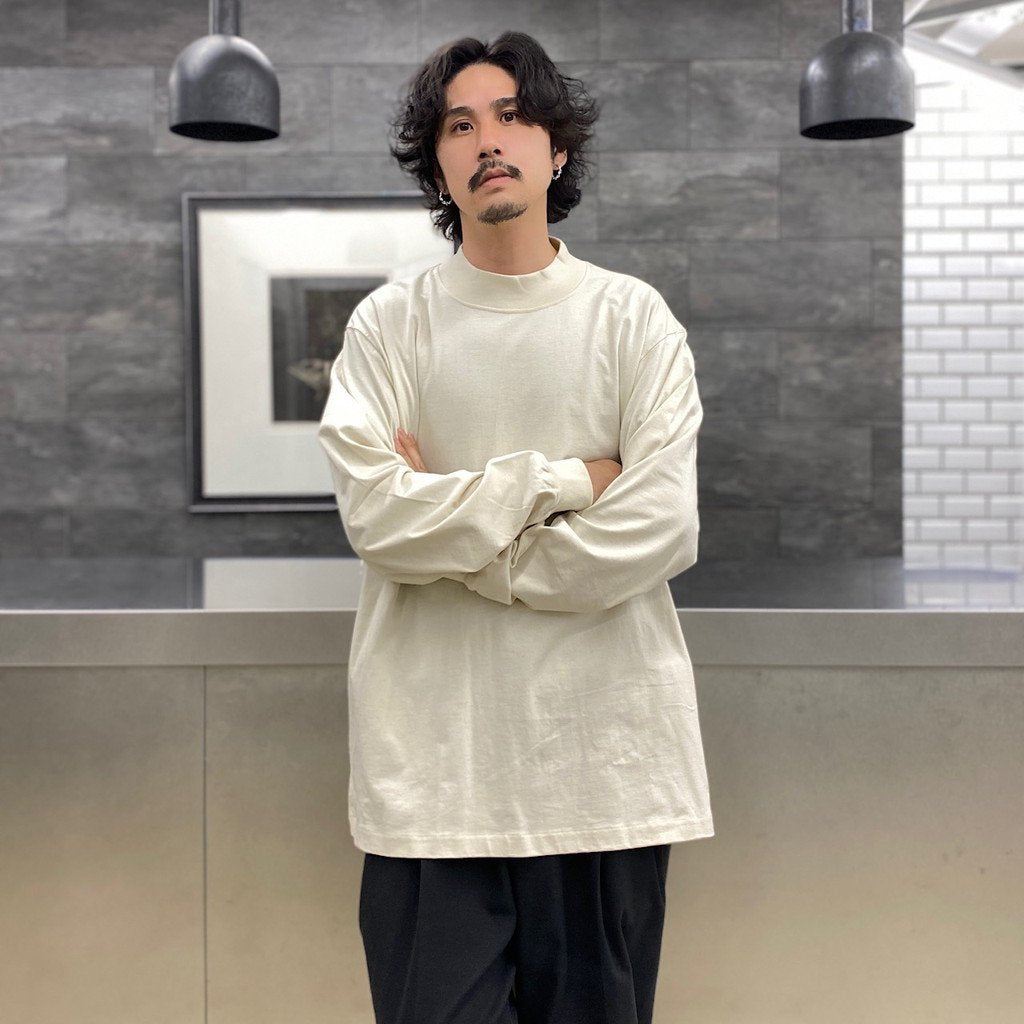 MOCK NECK LONG SLEEVE TEE #LIGHT BEIGE [209]