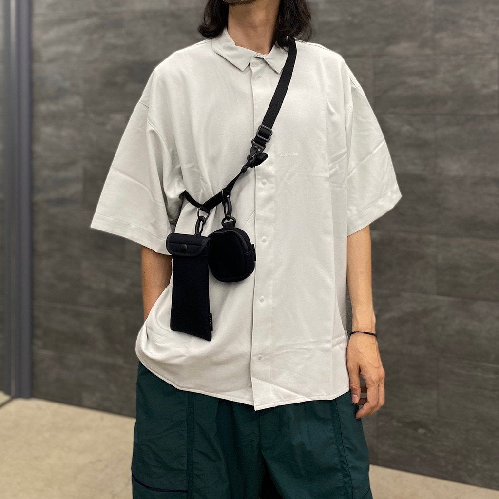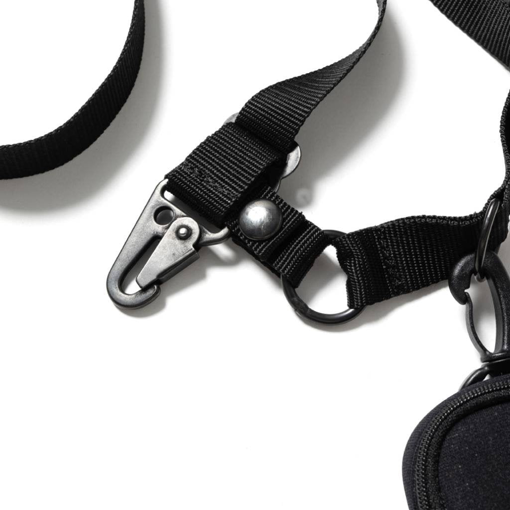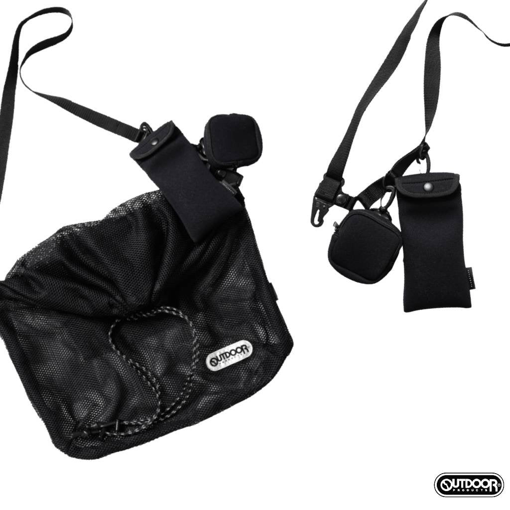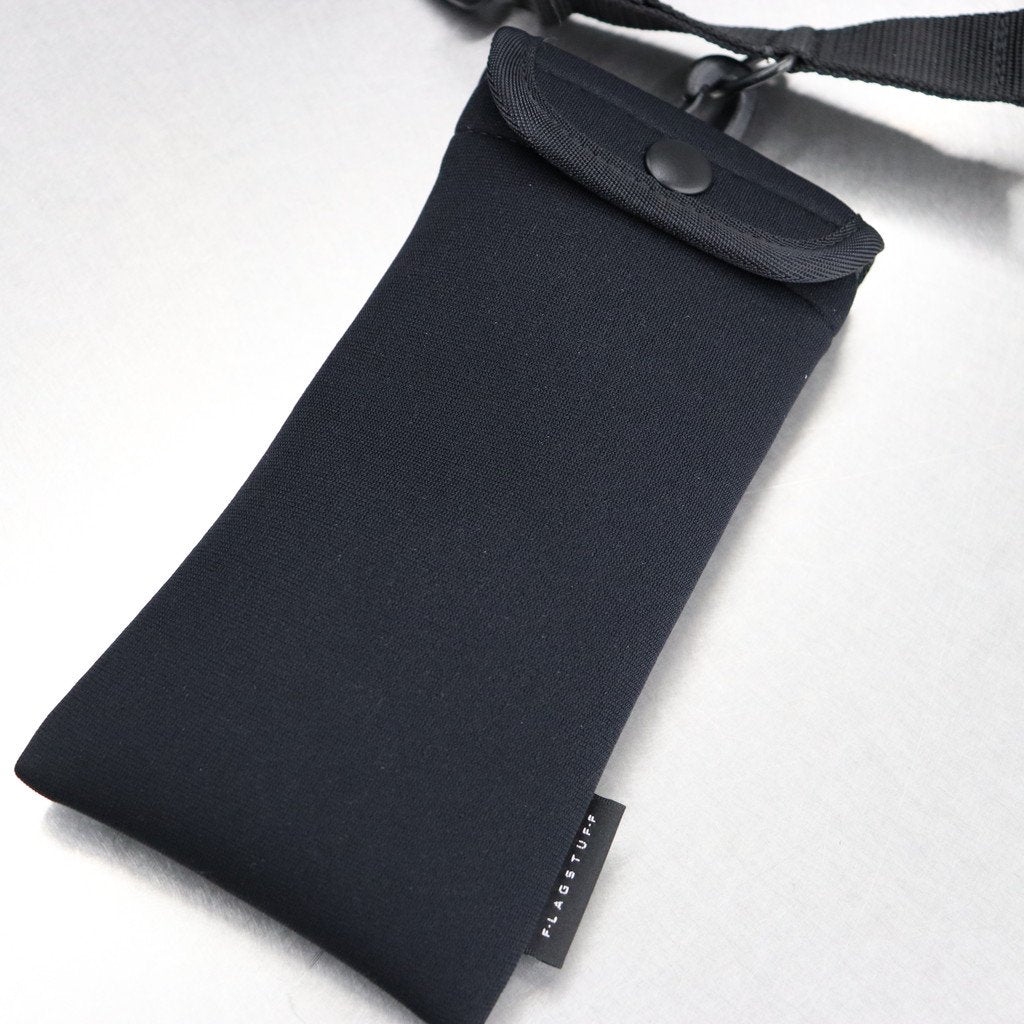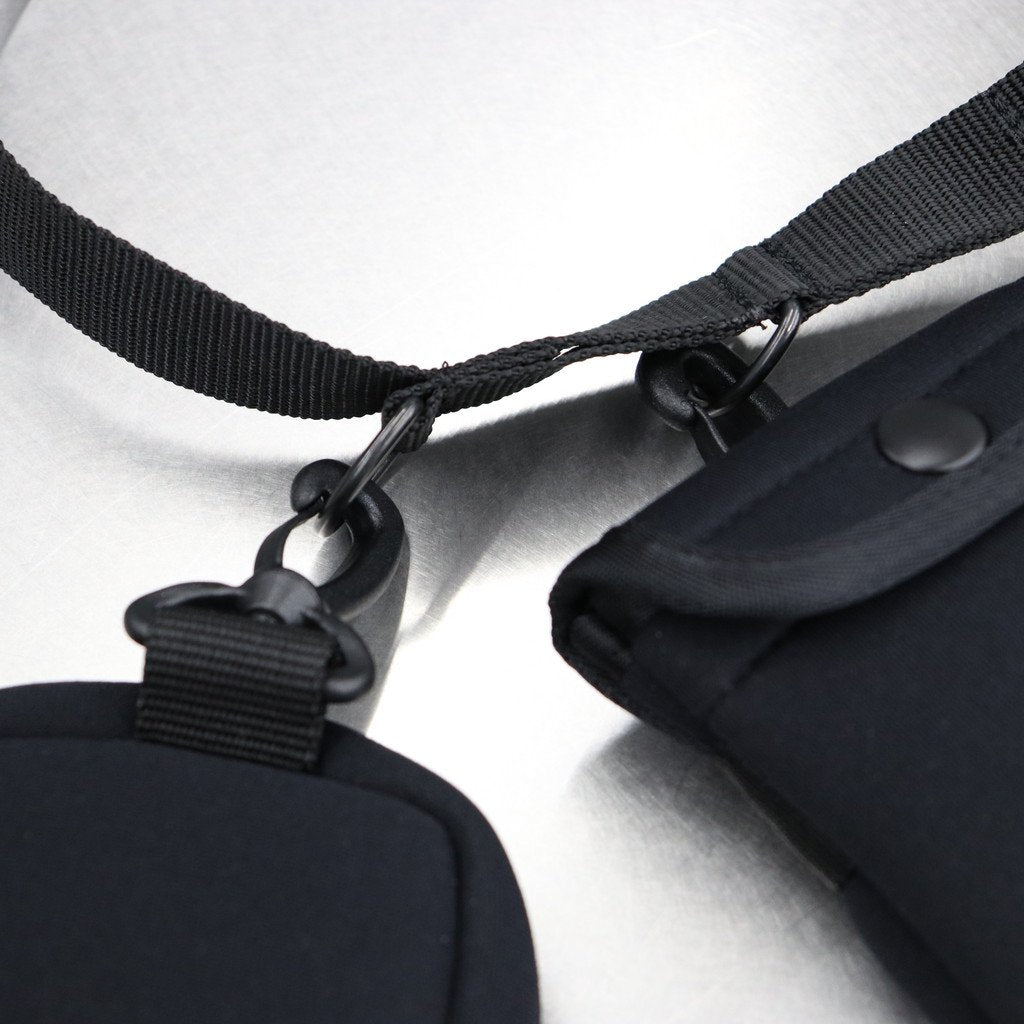 付属のショルダー部分にモバイルフォルダー(眼鏡、携帯電話)と小物入れ(イヤホン、充電器など)をセット
