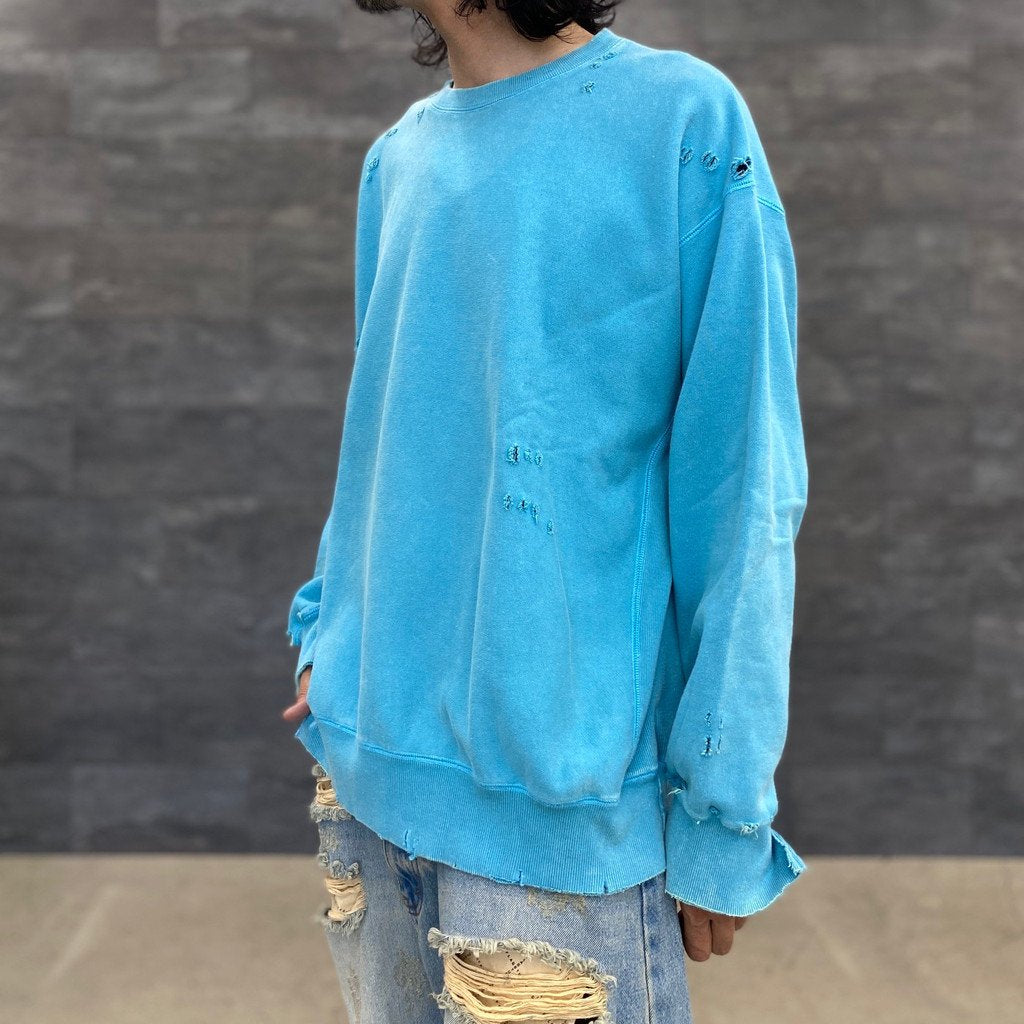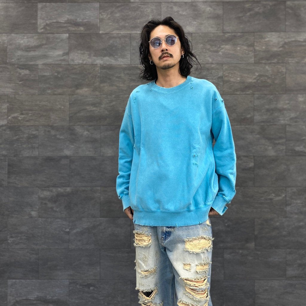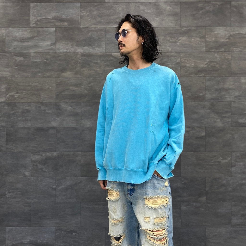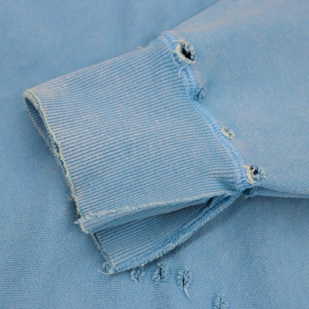 5)加工の工程で商品本体にダメージが加わることから、首元や服全体がヴィンテージ感のある風合いに仕上がっております。また、商品ページに記載のあるサイズ表記と比べ、若干の寸法差がある場合がございます。予めご了承ください。」