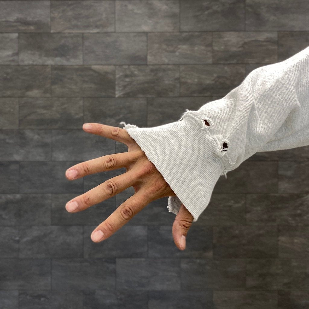 5)加工の工程で商品本体にダメージが加わることから、首元や服全体がヴィンテージ感のある風合いに仕上がっております。また、商品ページに記載のあるサイズ表記と比べ、若干の寸法差がある場合がございます。予めご了承ください。」