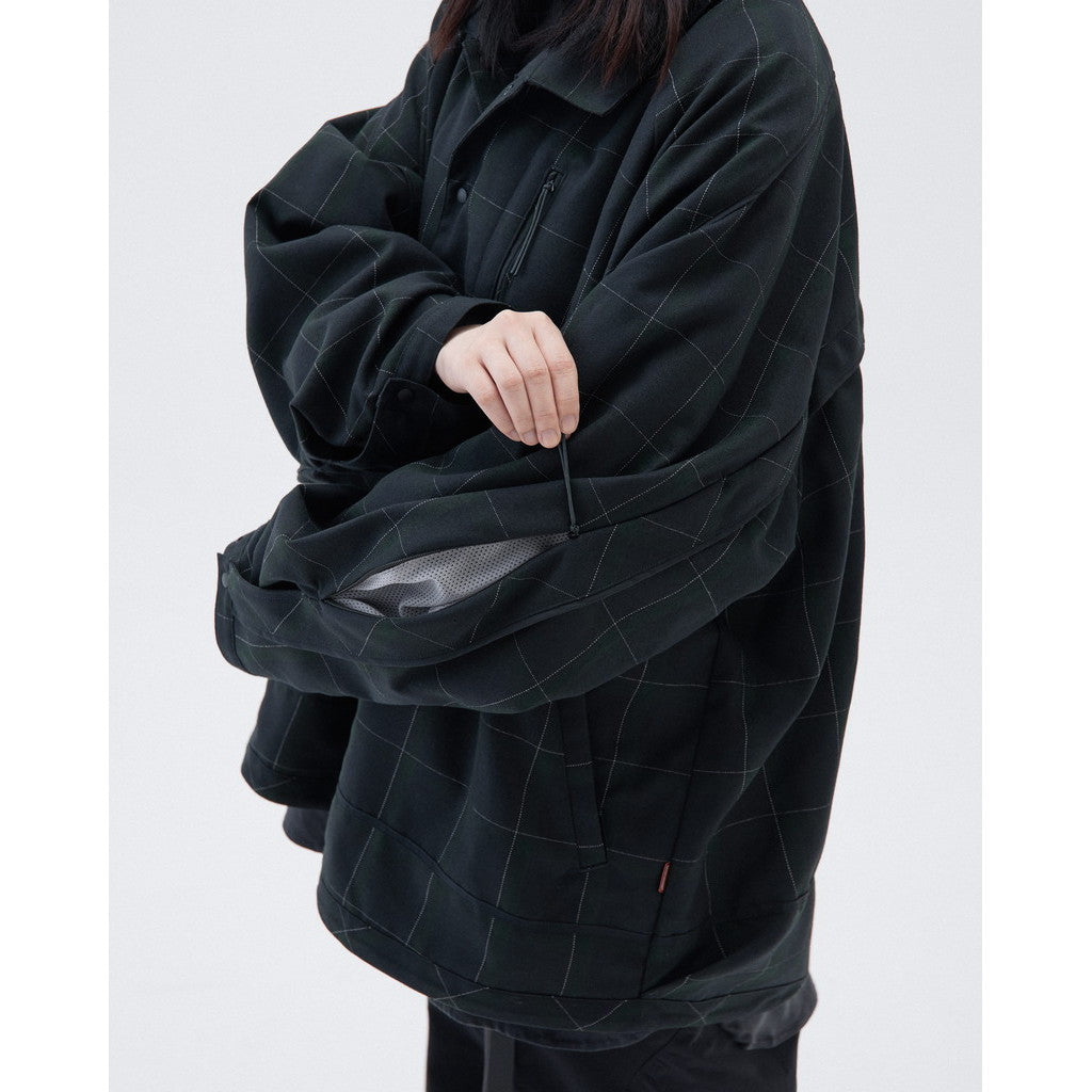 背中のヨークから袖にかけて伸びたデザインの延長上にジップシステムを配置することで、