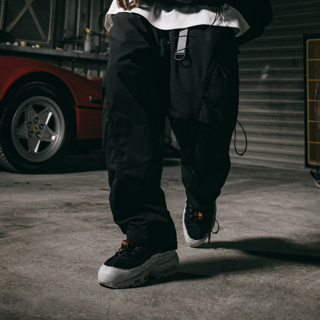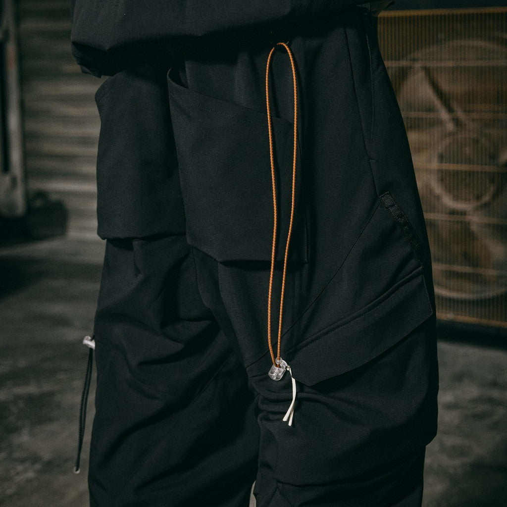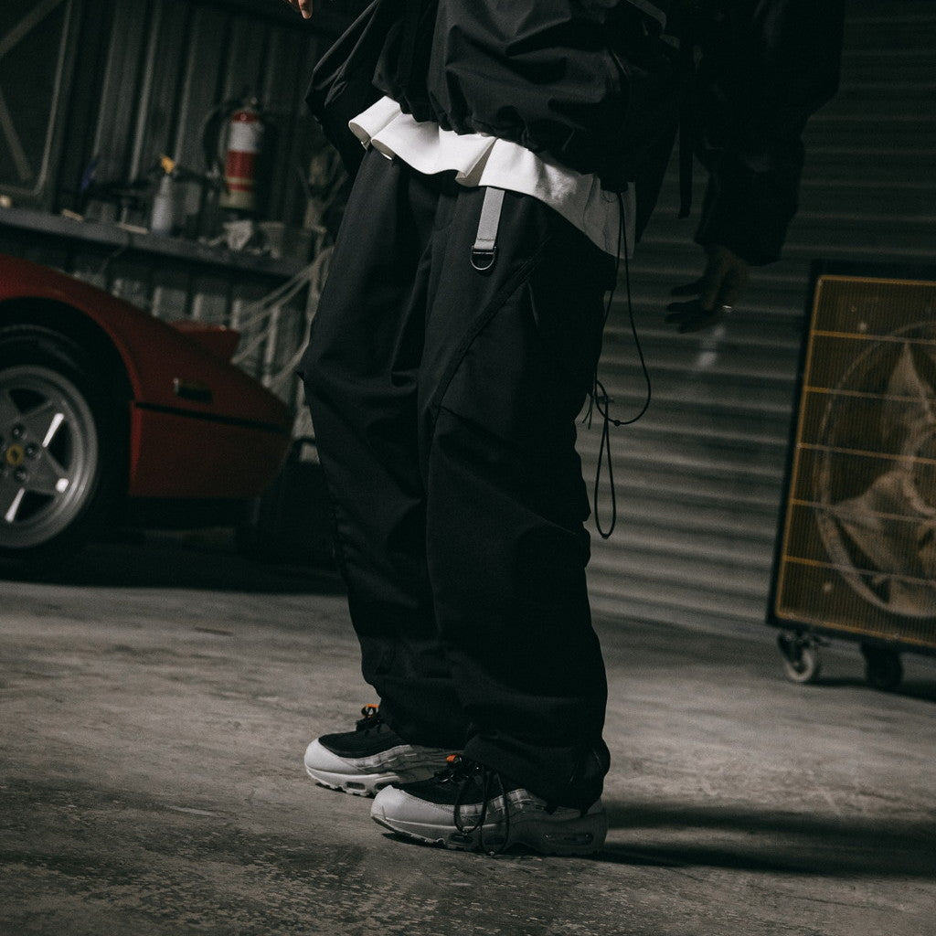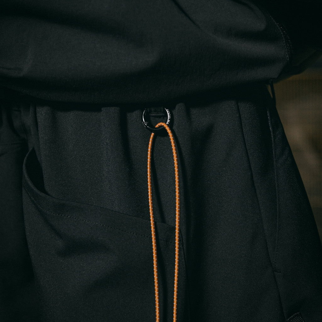 ドローストリングを引っ張ることでパンツの丈感を変化させれる他、