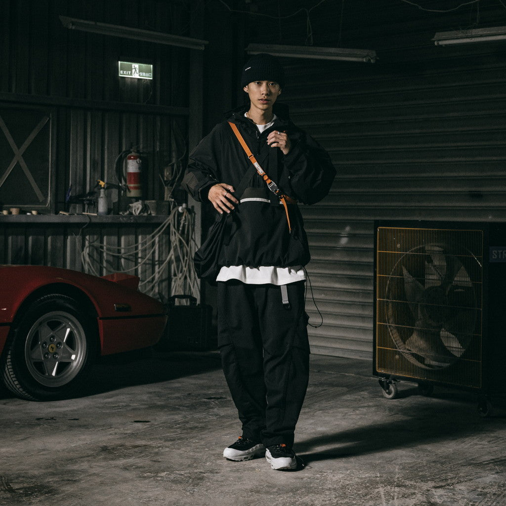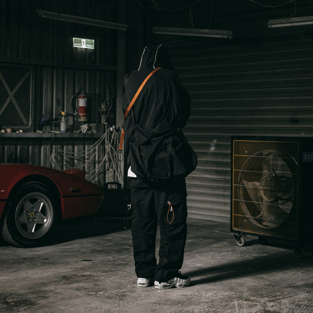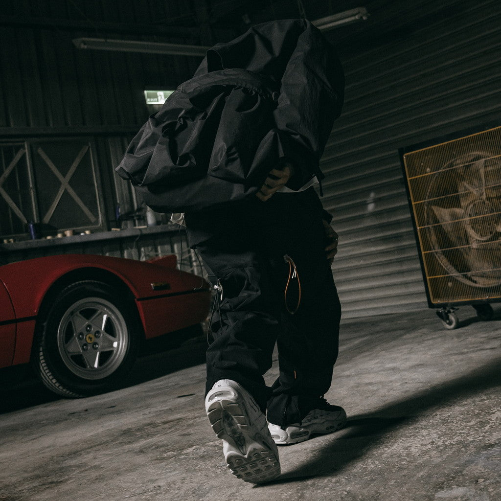 複雑な形状を崩さず更にドローストリングシステムを組み込んだGOOPiMADEならではのデザイン。