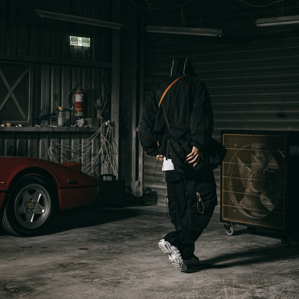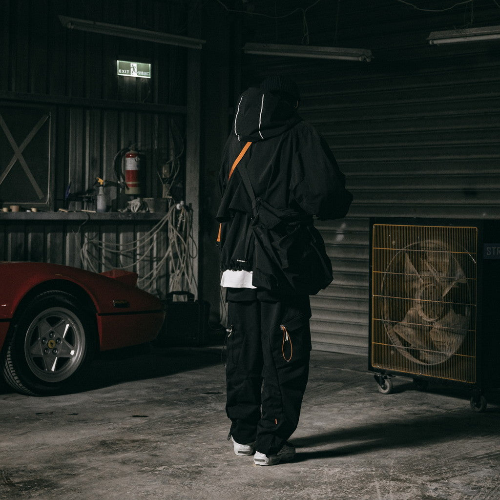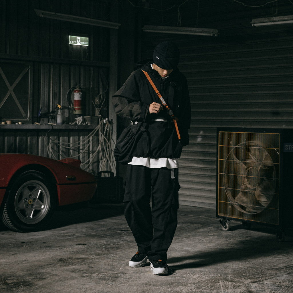 複雑な形状を崩さず更にドローストリングシステムを組み込んだGOOPiMADEならではのデザイン。