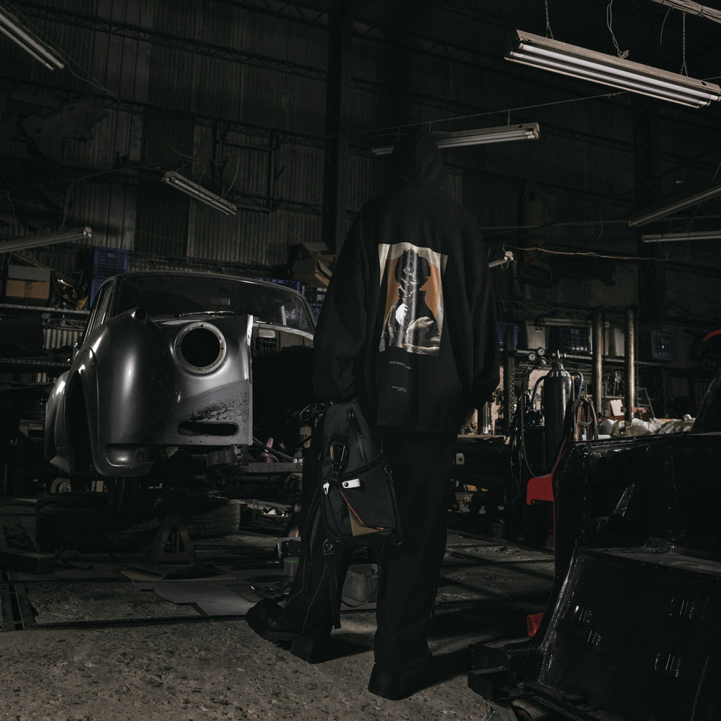 バックに描かれたシャドウペイントは18世紀ヨーロッパの公爵をイメージ。