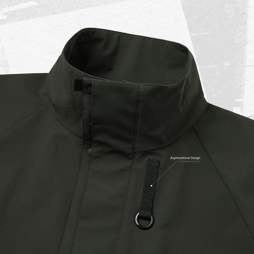 防水透湿加工が施されたダブルレイヤーのナイロンスパンデックス素材を使用したウィンドブレーカージャケット。
