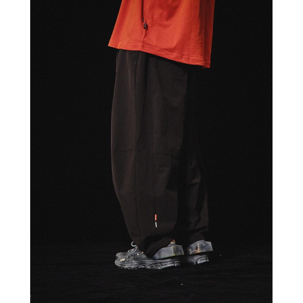 ウエスト、膝、脚にダーツを入れたバルーンシルエットパンツ。