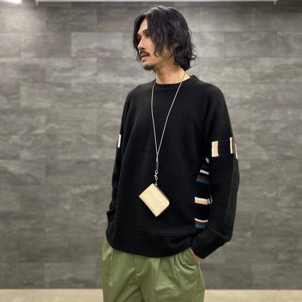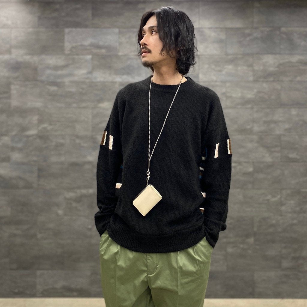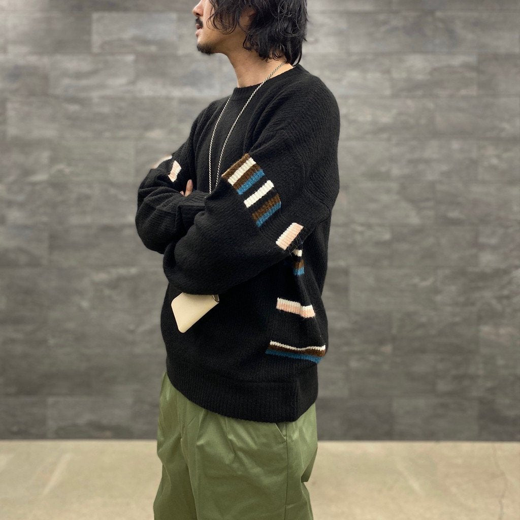 脇にオリジナルのボーダー柄を配置したモヘアニット。