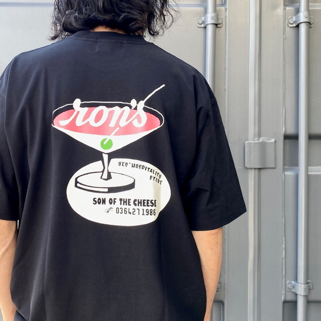 カクテルのグラフィックをフロントとバックにプリントしたTシャツ。