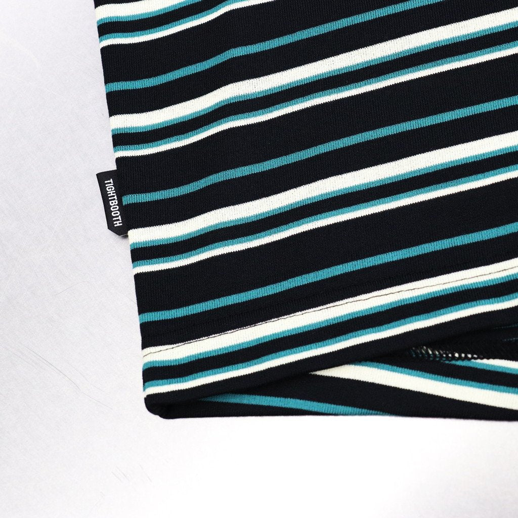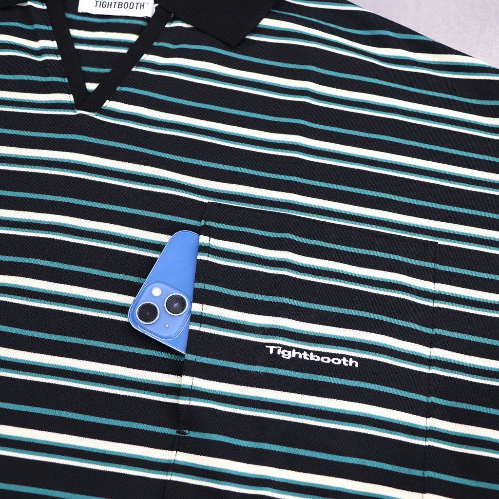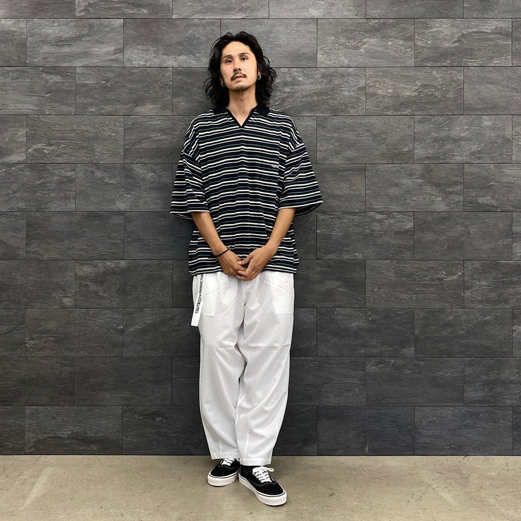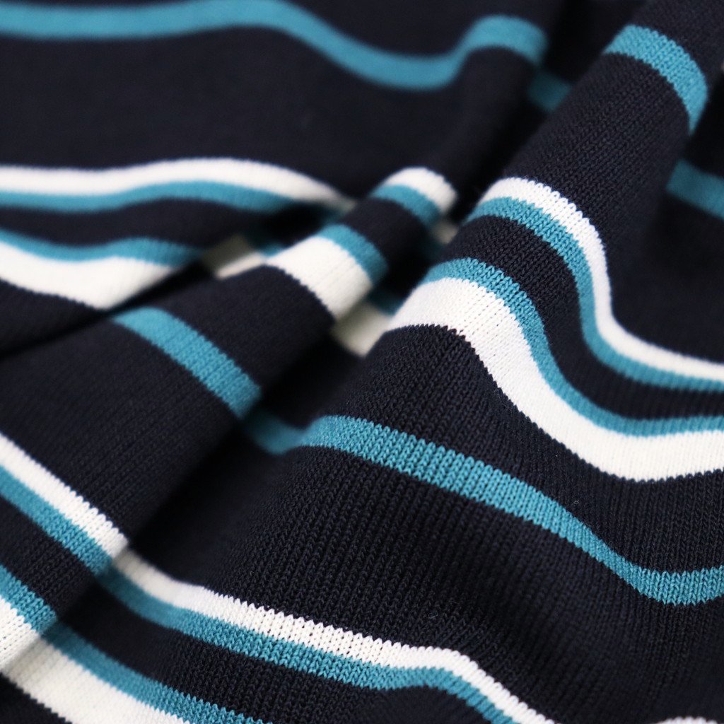 オリジナルボーダー柄の開襟ポロシャツ。