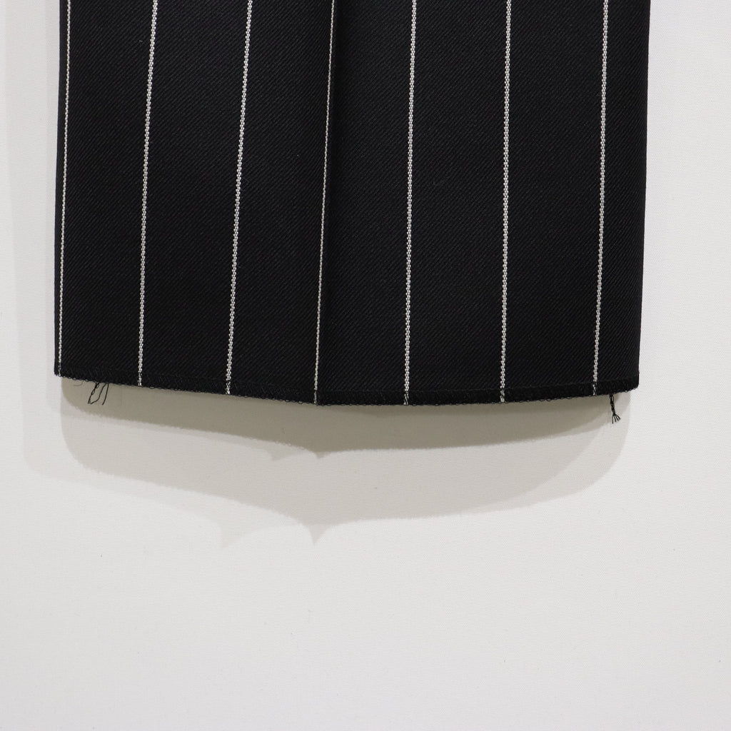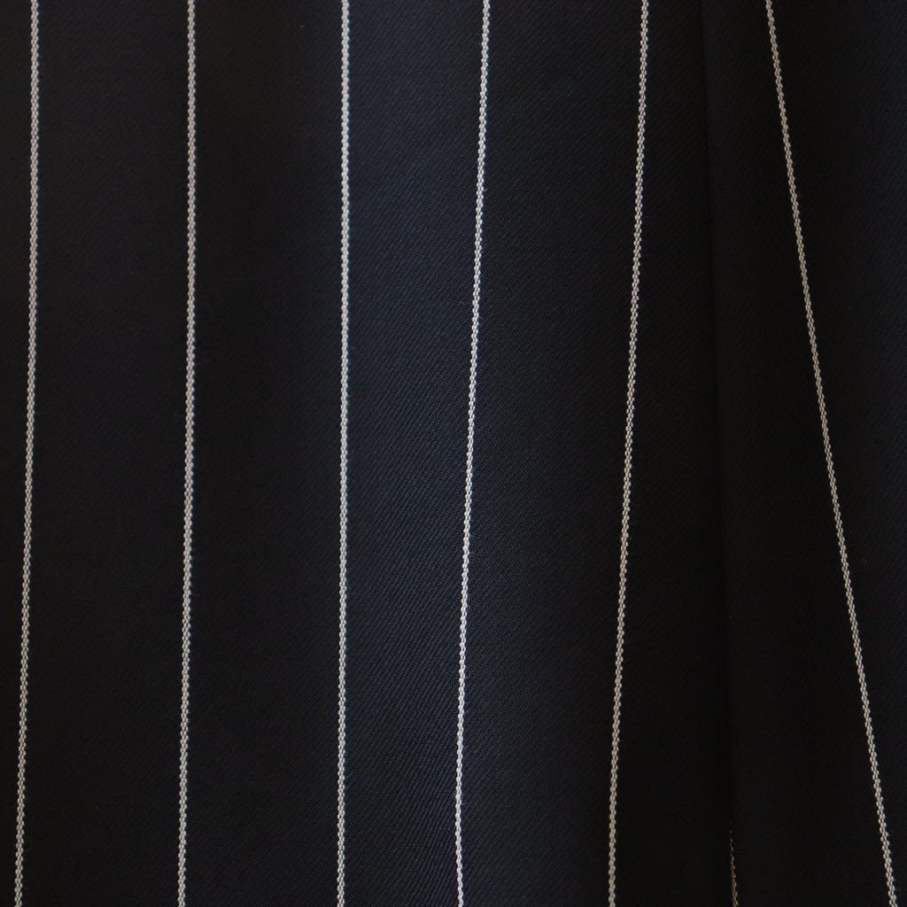 生地の特徴 - 黒に白のピンストライプ。オールシーズン着用可能。