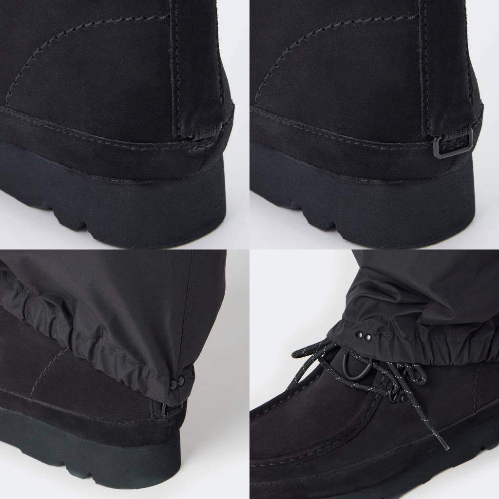 -ブーツとゲーターの独自の一体感は個性的なファッション性も兼ねており、ゲーターの留める位置を膝上や膝下、さらに踝丈と調整することでコーディネートのアレンジが可能。