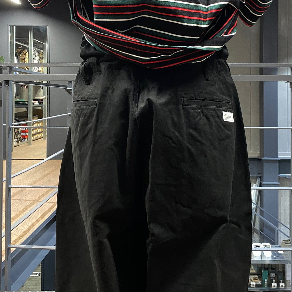 程よい肉感のコットンツイル素材を使用したワイドパンツ。