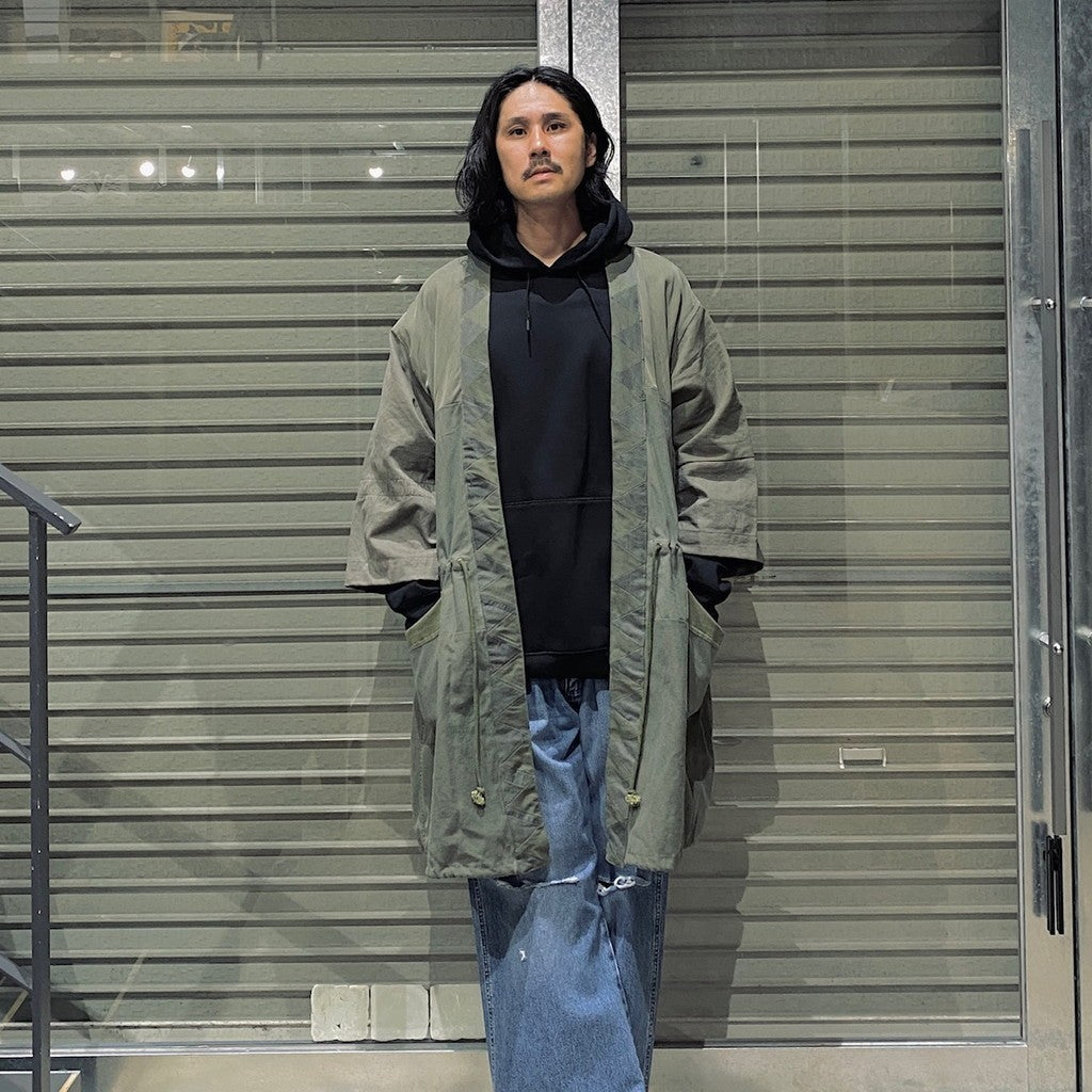 日本古来の衣類ですがリメイクされていることで普段使いしやすい印象となっておりコーディネートしがいのあるウェアとなっています。