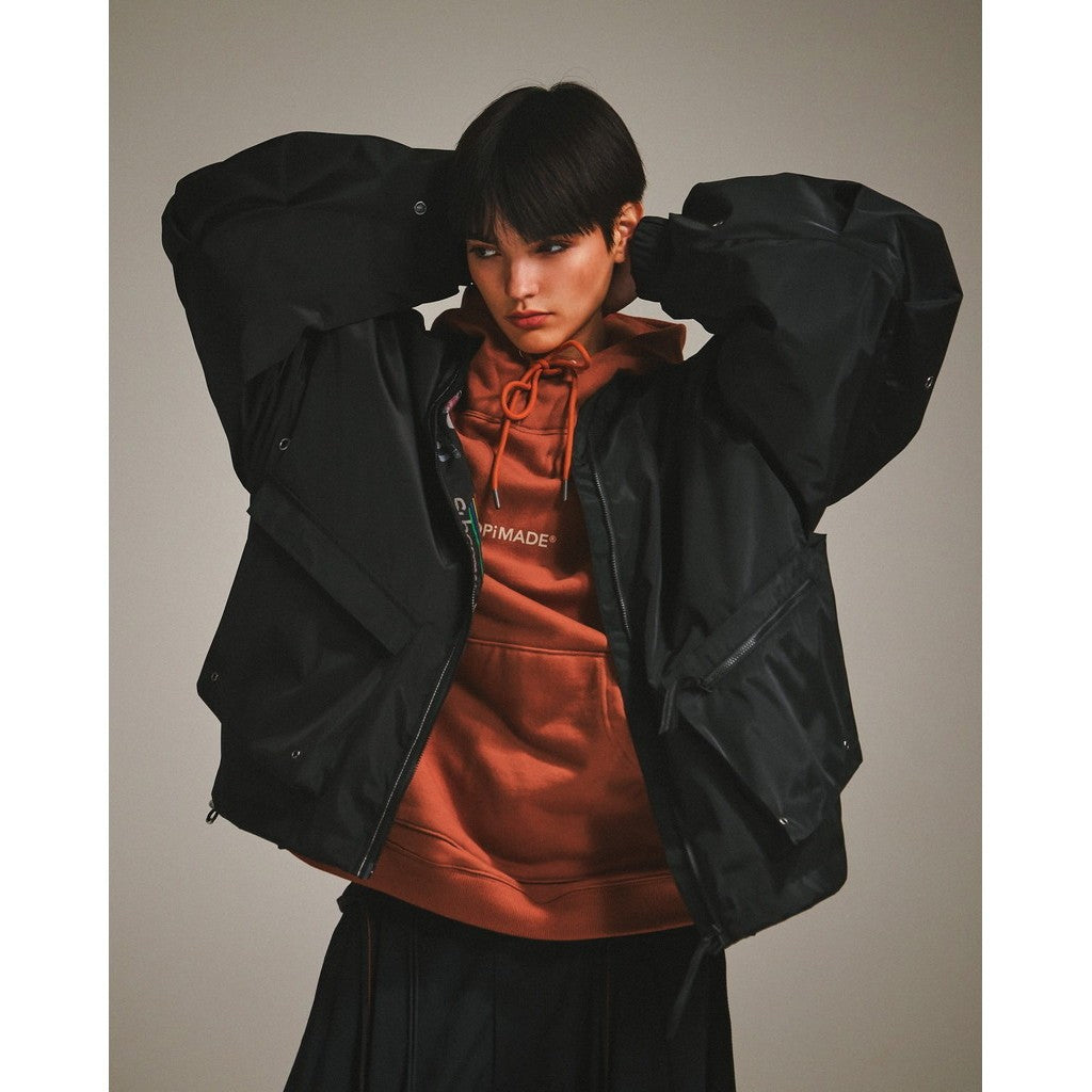 ボンバージャケットをベースとしたポリエステル素材のアウター。