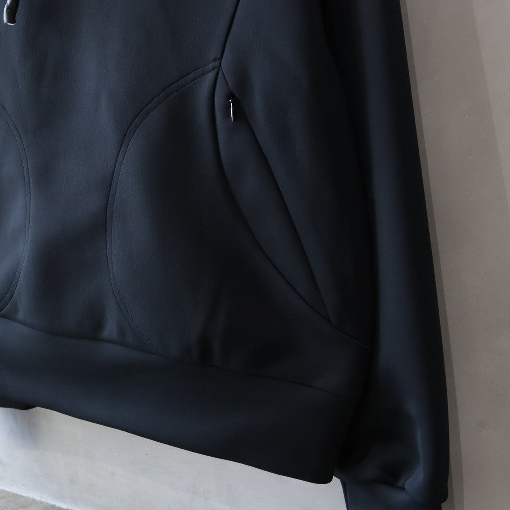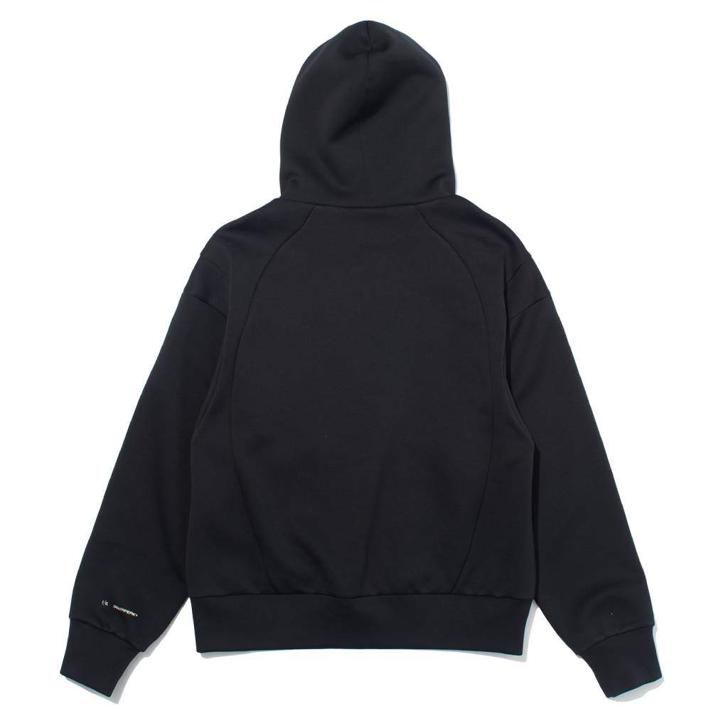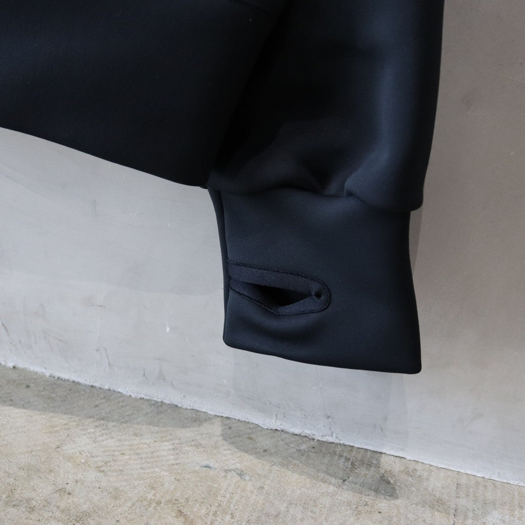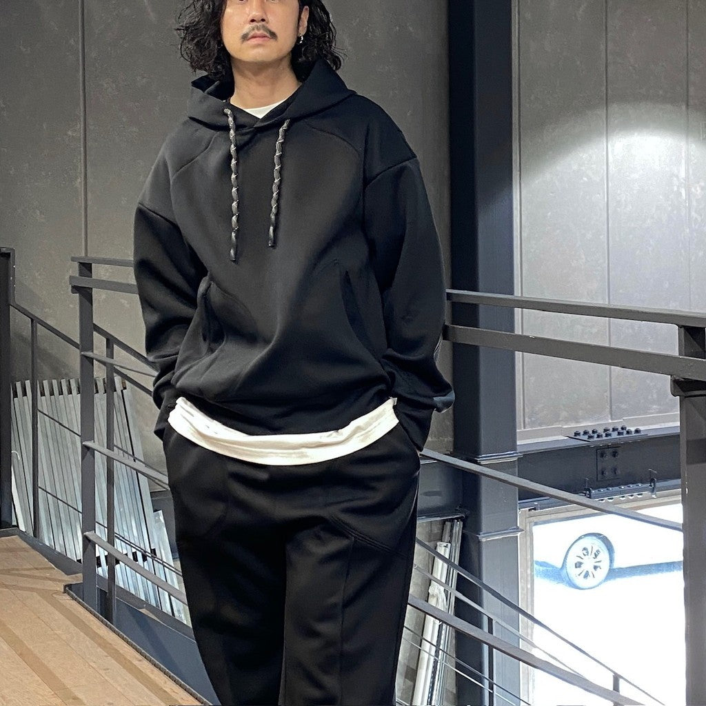 通常のスウェットにはないサラッとした肌触りと肉厚で弾力性のある軽量テック素材。