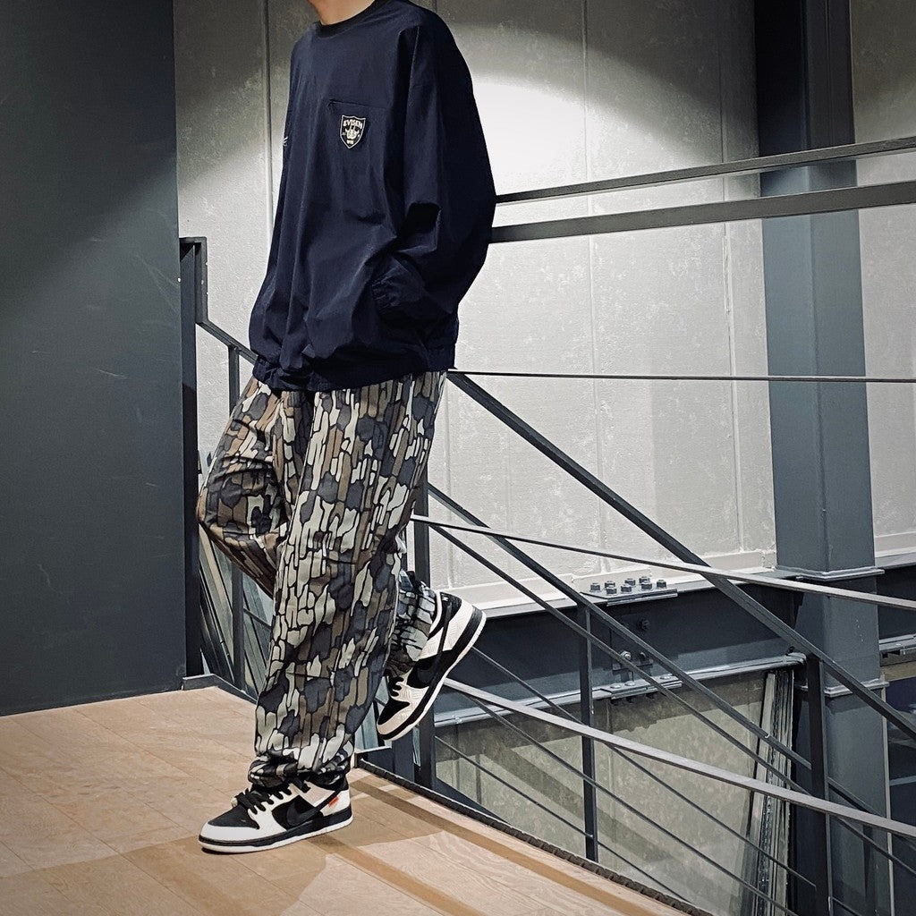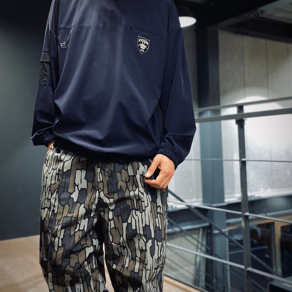 ブラックのソリッドカラーと、EVISENの文字が隠れたオリジナルのカモフラージュ柄をラインナップ。