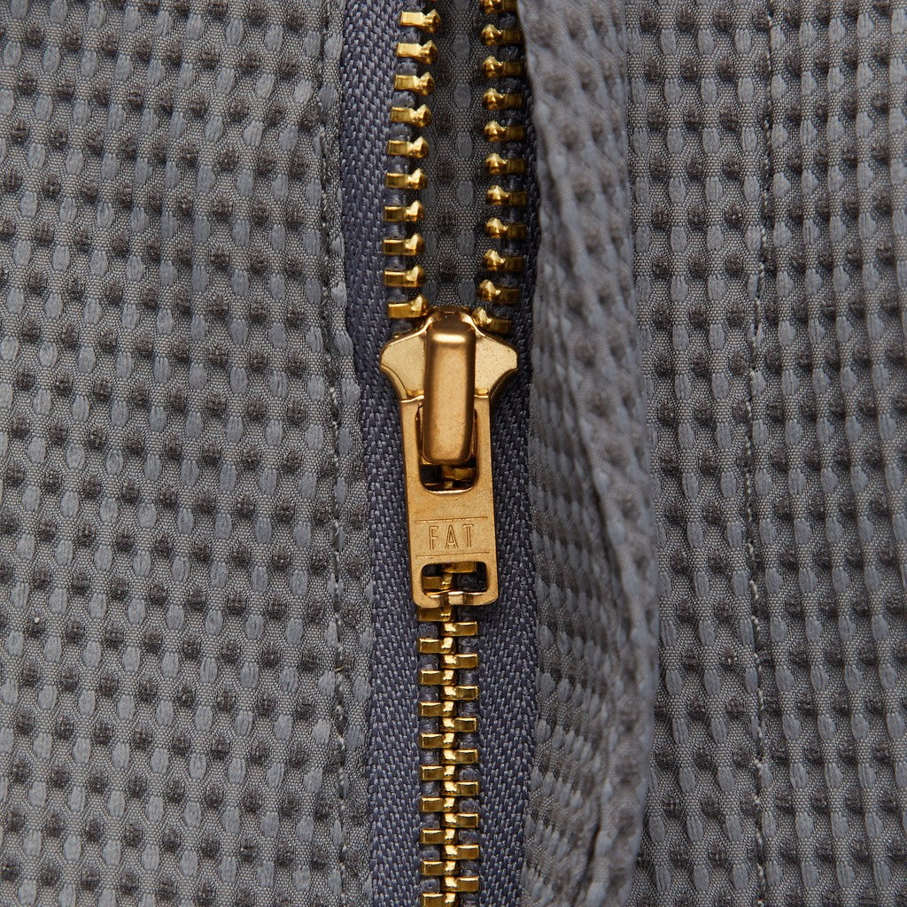 フロントのロゴ刺繍とバックのブランドネームがさり気なく主張してくれる。